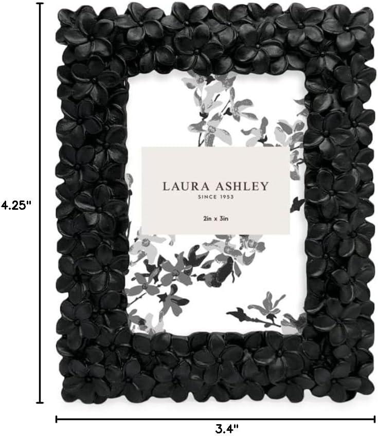 Laura Ashley 5×7 Powder Blue Flower Textured Hand-Crafted Resin Picture Frame w/Easel & Hook for Tabletop & Wall Display, Decorative Floral Design Home Décor, Photo Gallery, Art (5×7, Powder Blue)(Black)