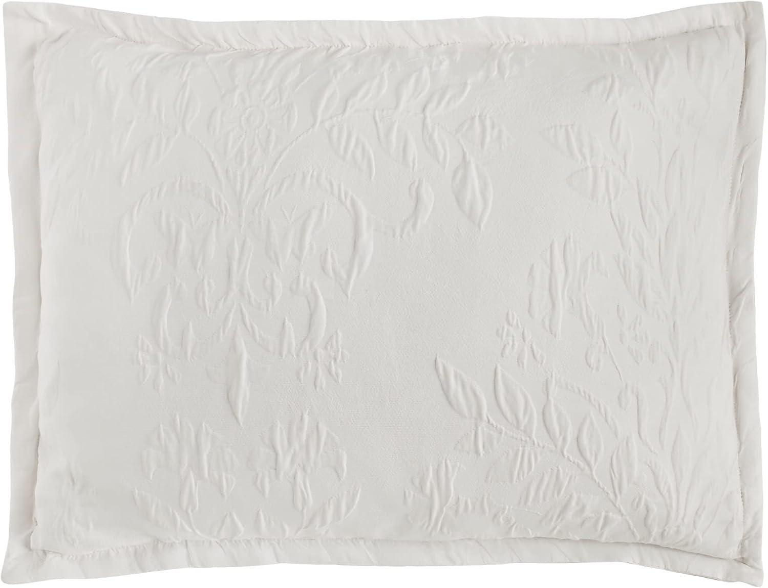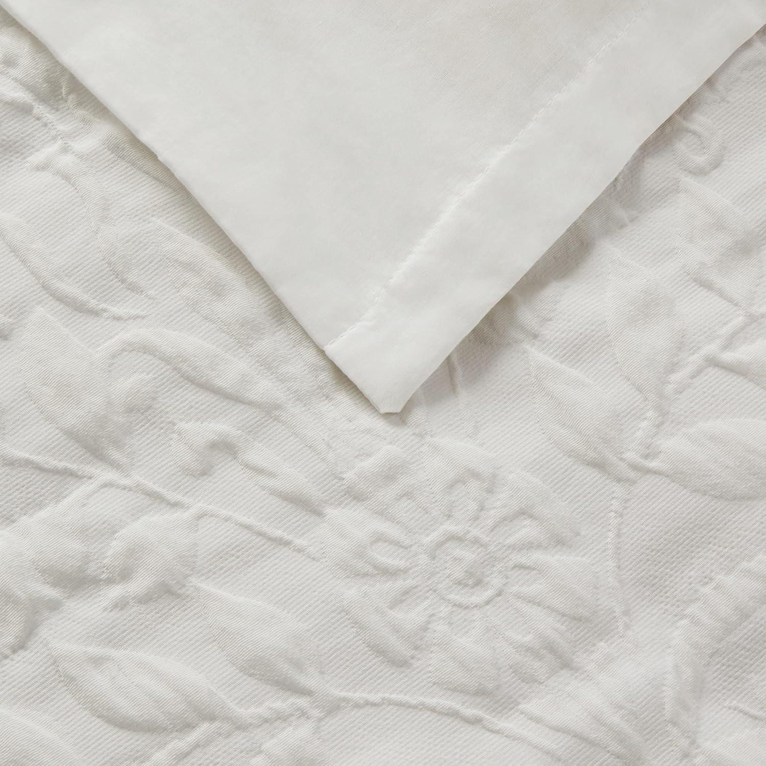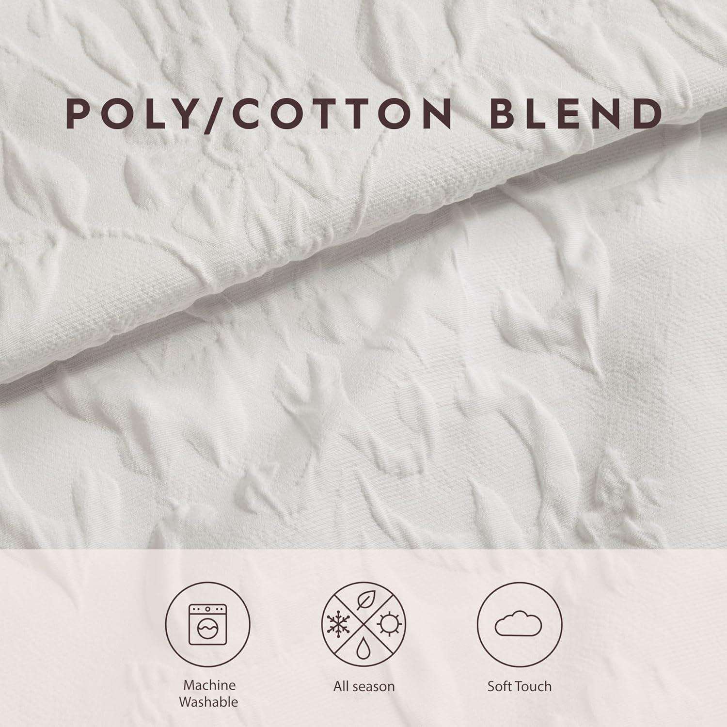 The Rowland Duvet Cover Set from Laura Ashley features an elegant and classic textured white floral matelasse design. The face is constructed with 70% polyester/30% cotton in a raised floral texture, while the reverse is smooth 100% cotton The included shams feature European end cap closures. Duvet cover features a button closure and includes inner corner ties to keep your duvet insert in place during use. Duvet insert is not included and the set is machine washable for easy care.