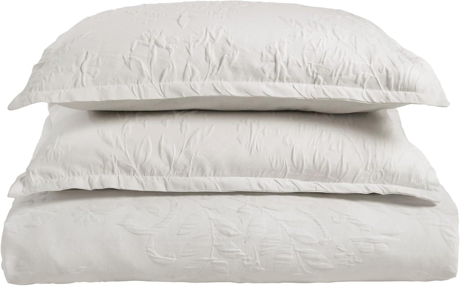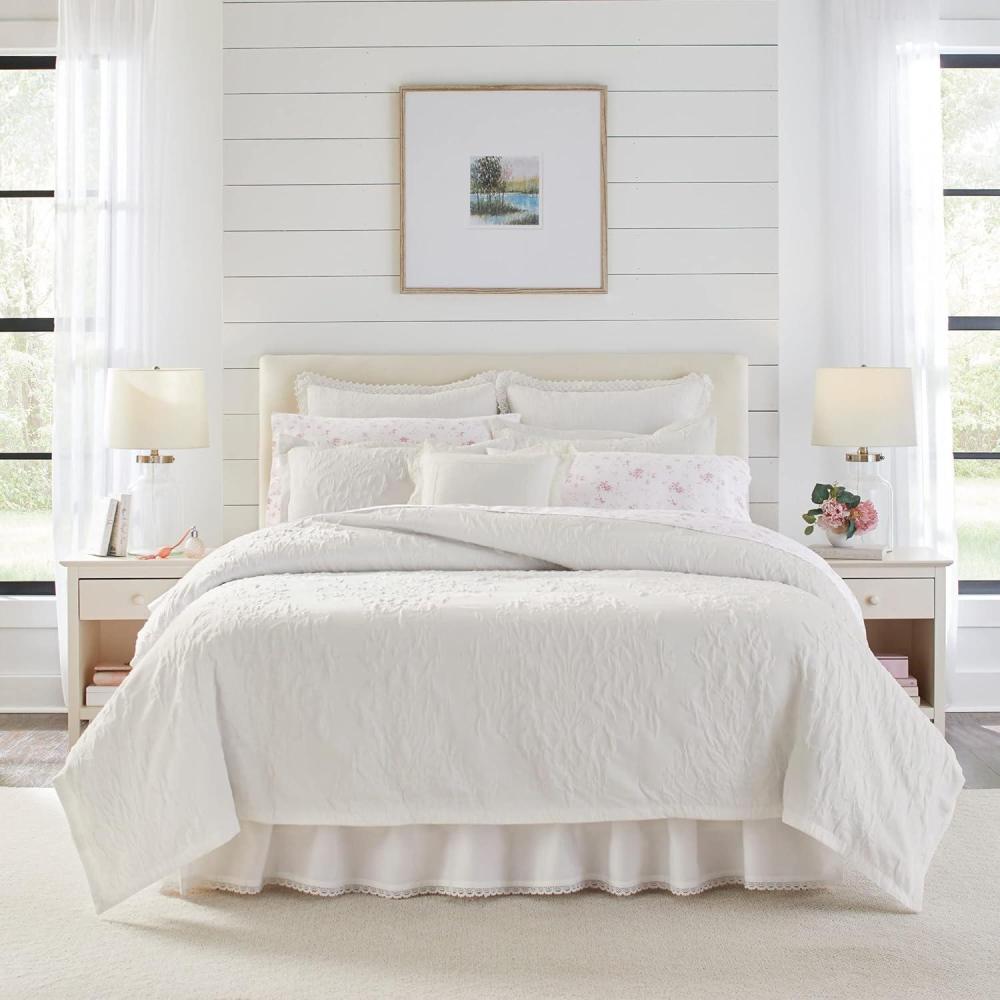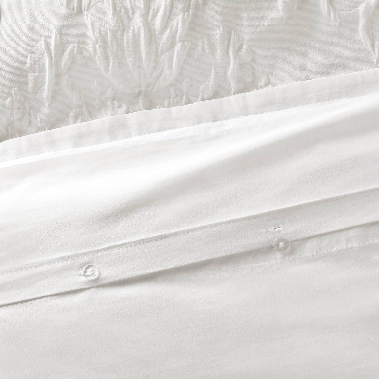 Laura Ashley Home- Queen Duvet Cover Set, Cotton Reversible Bedding with Matching Sham(s), Farmhouse Home Décor (Rowland Matelasse White, Queen)(Rowland Matelasse White)