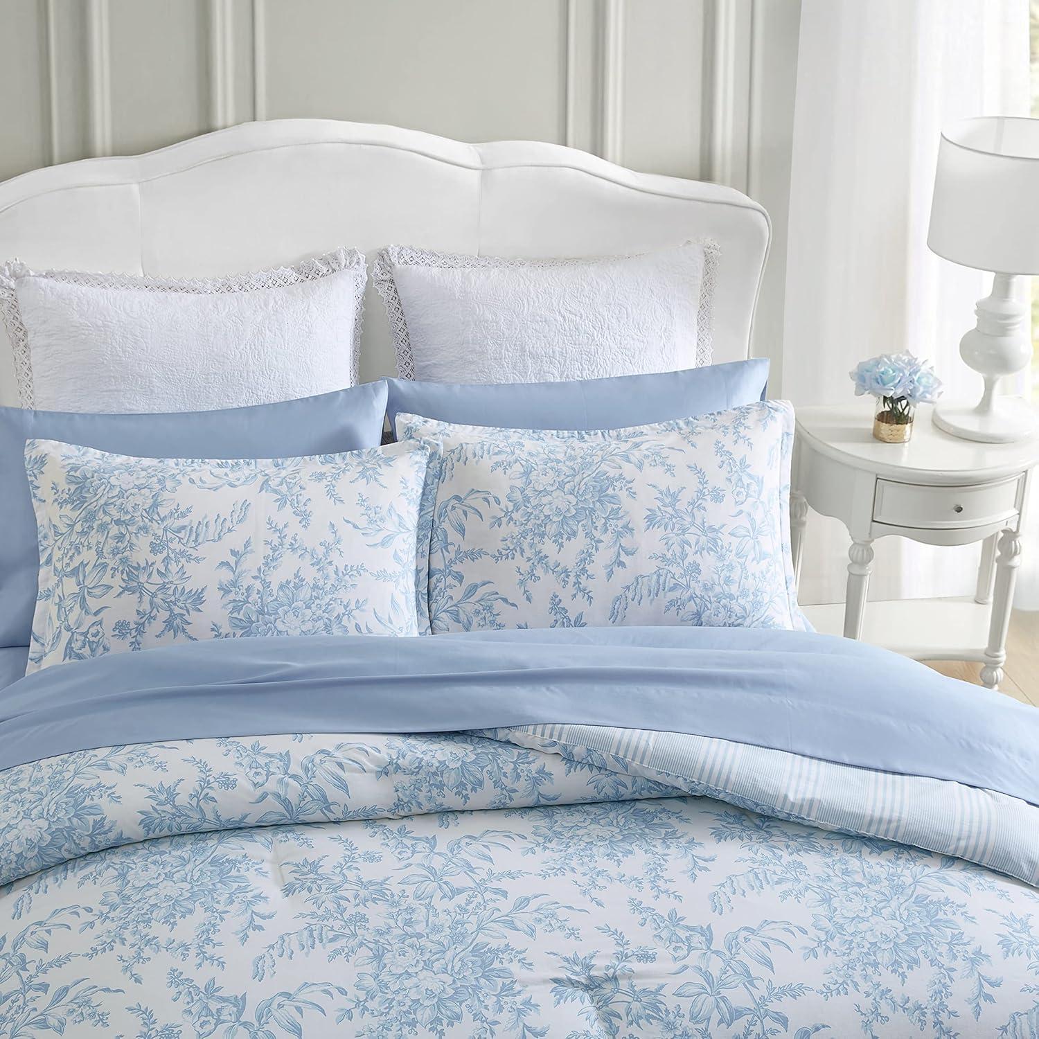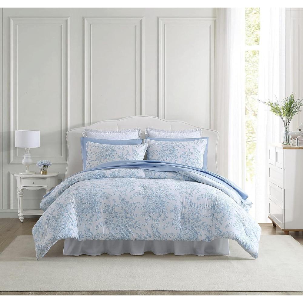 imageLaura Ashley  Twin Comforter Set Cotton Floral Bedding with Matching Sham OekoTex Certified Dorm Essentials Heather Garden PinkBelinda Blue