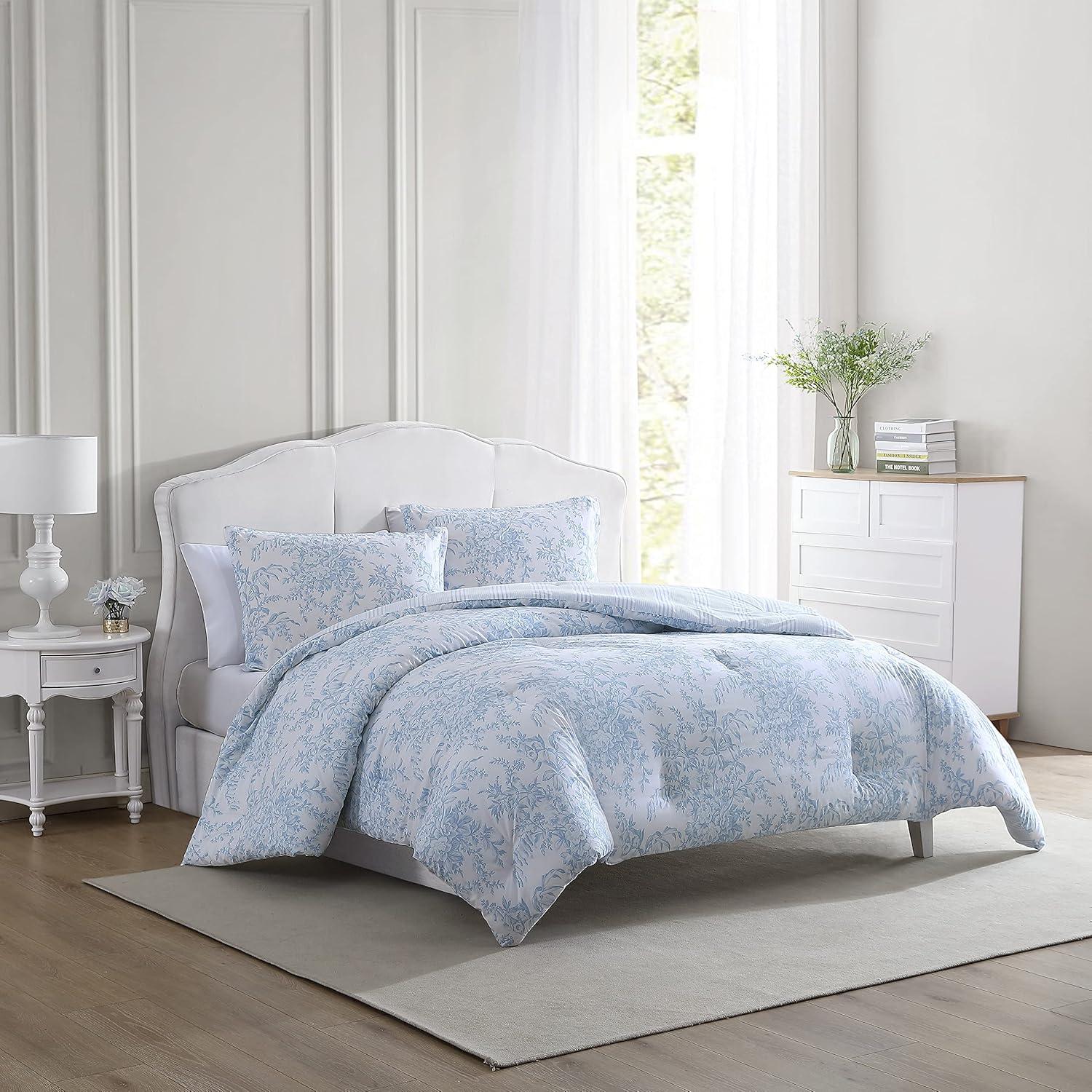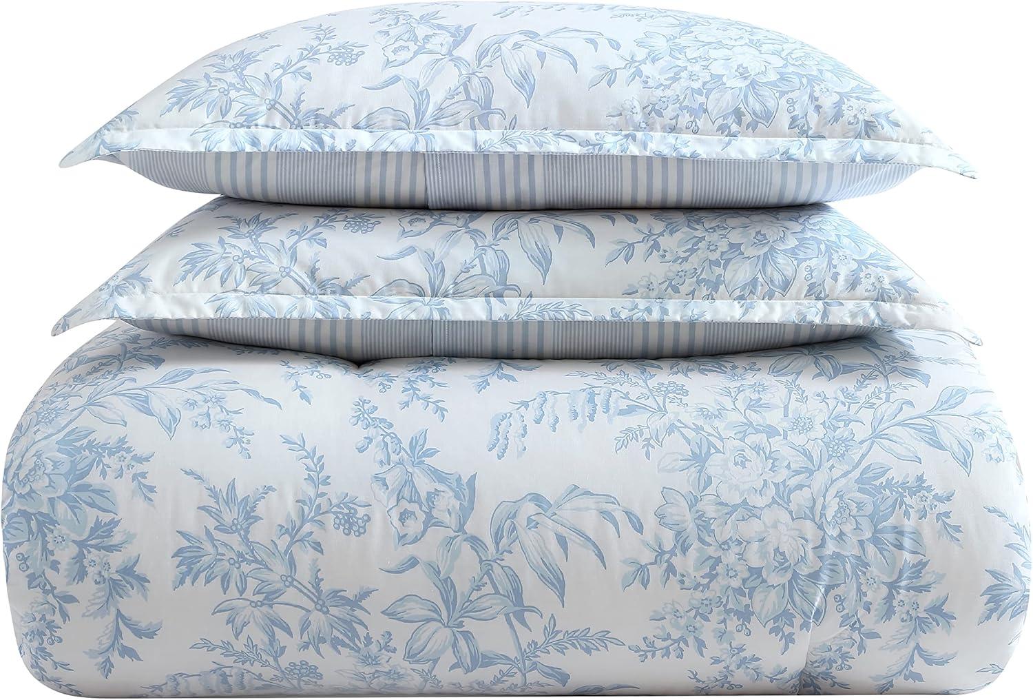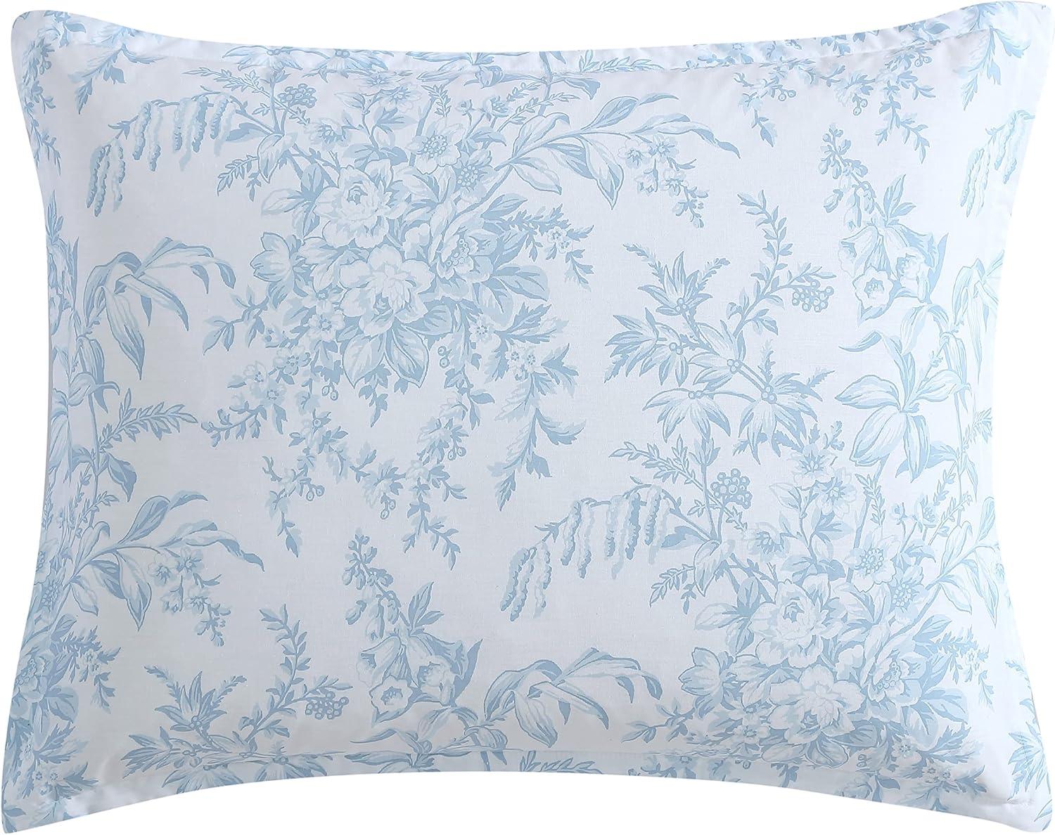 Laura Ashley – Twin Comforter Set, Cotton Floral Bedding with Matching Sham, Oeko-Tex Certified, Dorm Essentials (Heather Garden Pink)(Bedford Blue)
