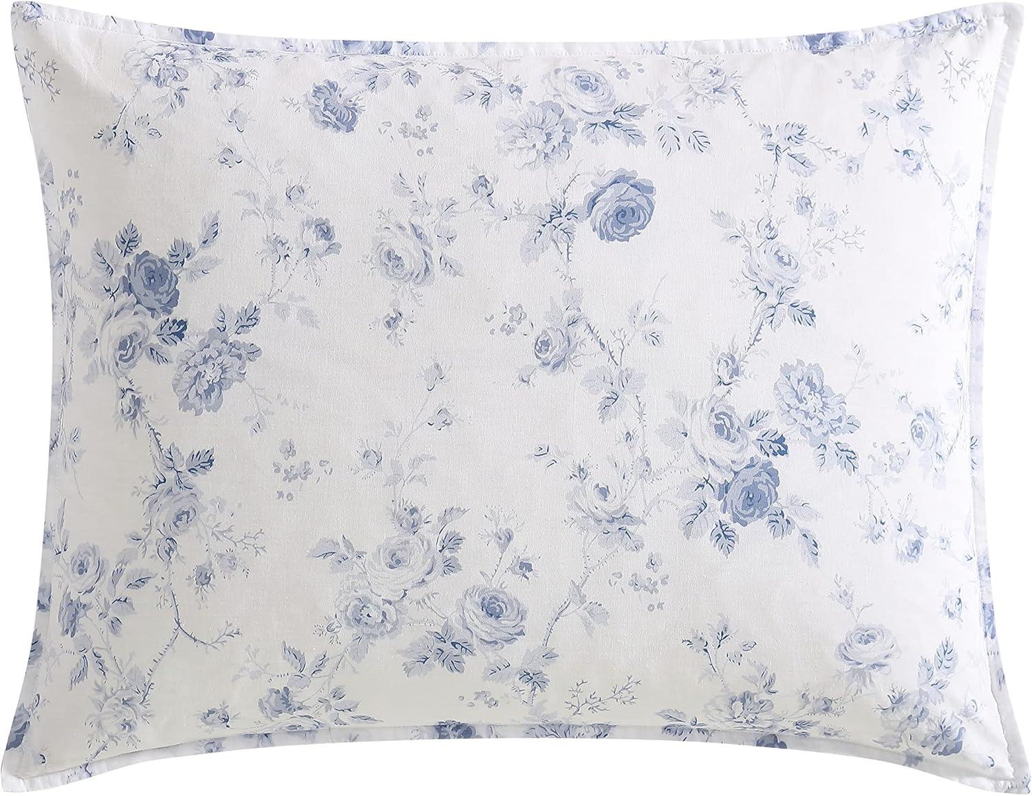Laura Ashley – Twin Comforter Set, Cotton Floral Bedding with Matching Sham, Oeko-Tex Certified, Dorm Essentials (Heather Garden Pink)(Bedford Blue)