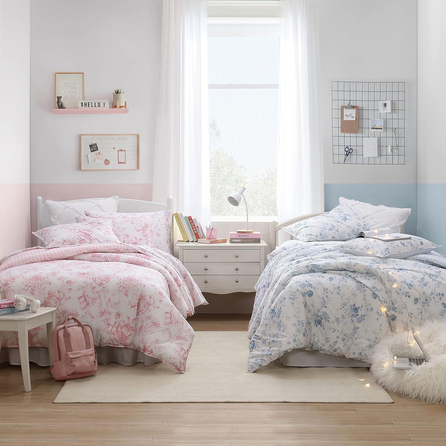 Laura Ashley – Twin Comforter Set, Cotton Floral Bedding with Matching Sham, Oeko-Tex Certified, Dorm Essentials (Heather Garden Pink)(Belinda Chambray Blue)