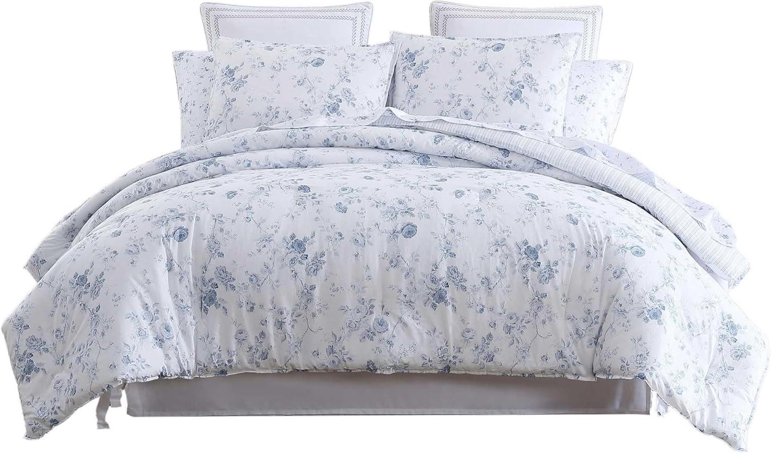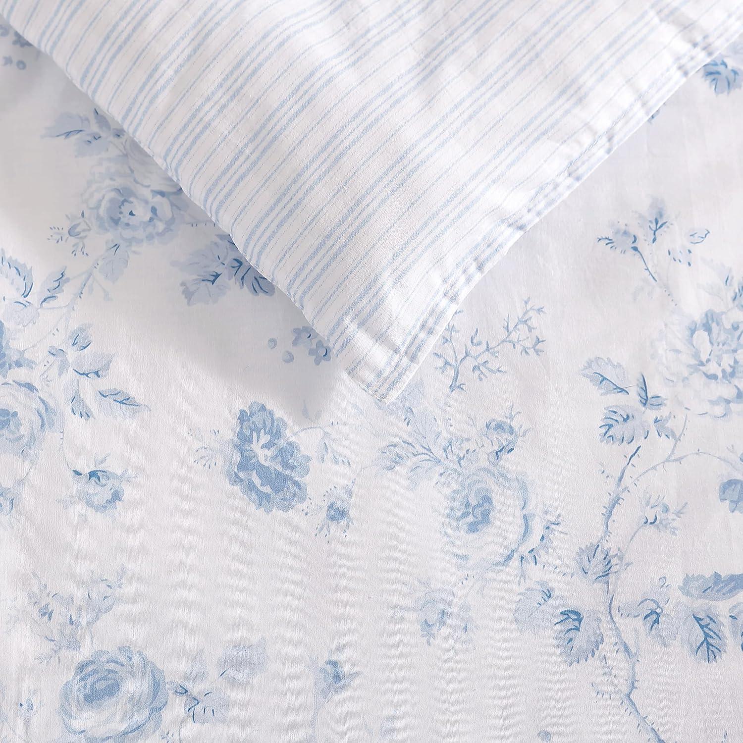 imageLaura Ashley  Twin Comforter Set Cotton Floral Bedding with Matching Sham OekoTex Certified Dorm Essentials Heather Garden PinkBelinda Chambray Blue