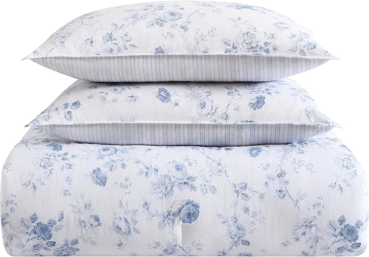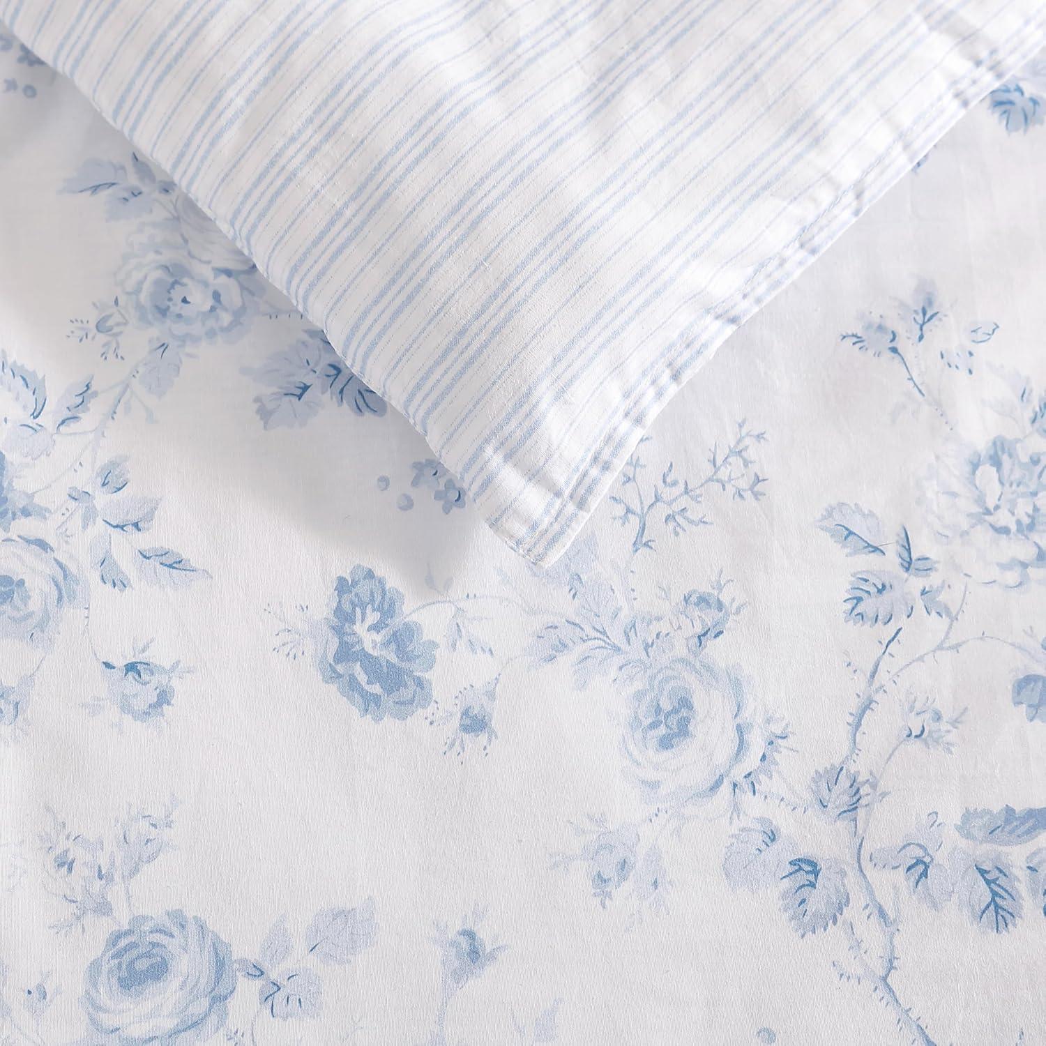 Laura Ashley – Twin Comforter Set, Cotton Floral Bedding with Matching Sham, Oeko-Tex Certified, Dorm Essentials (Heather Garden Pink)(Belinda Chambray Blue)