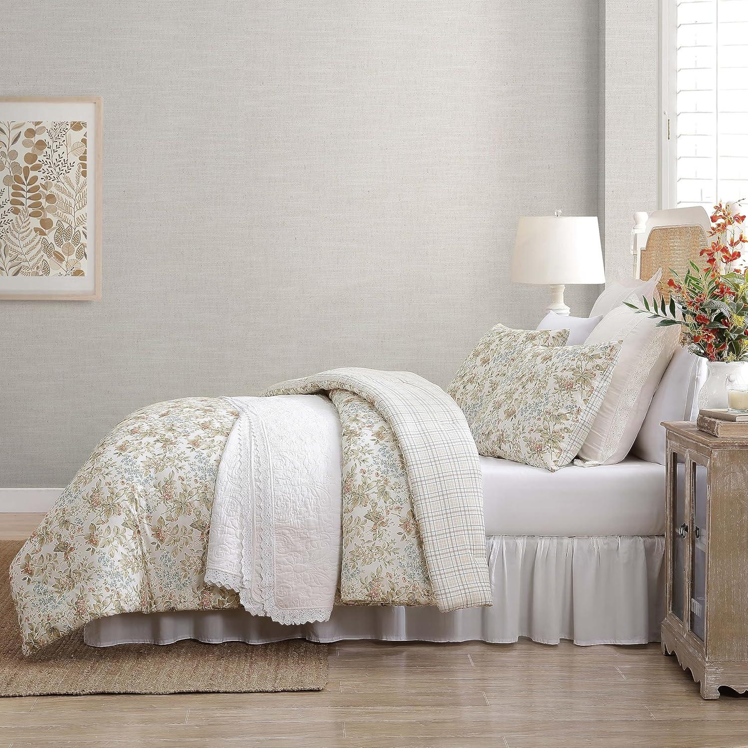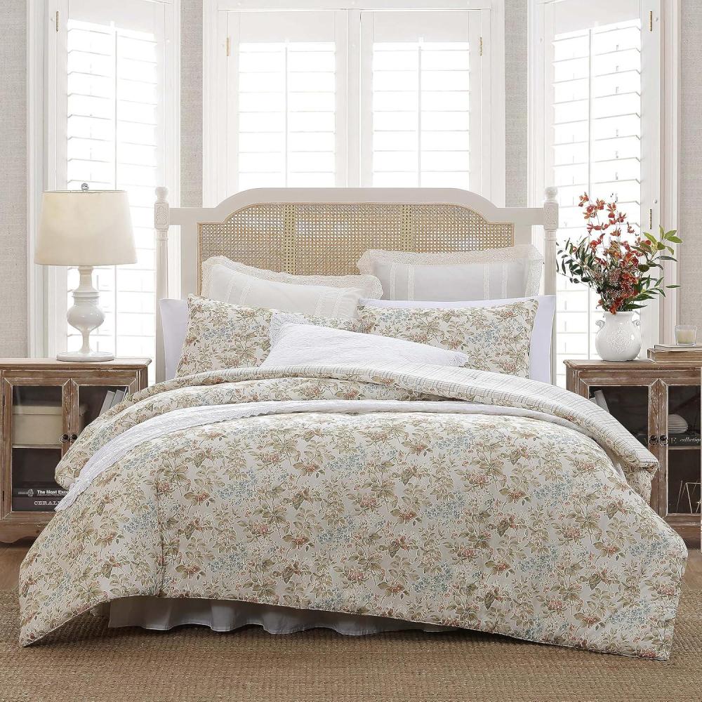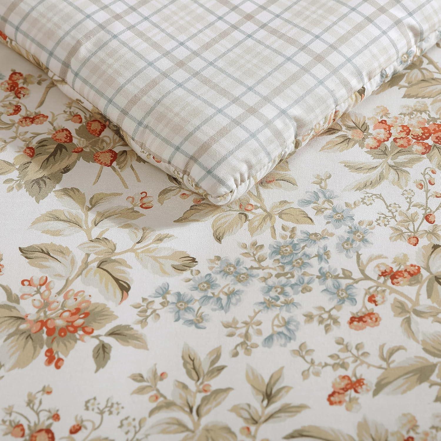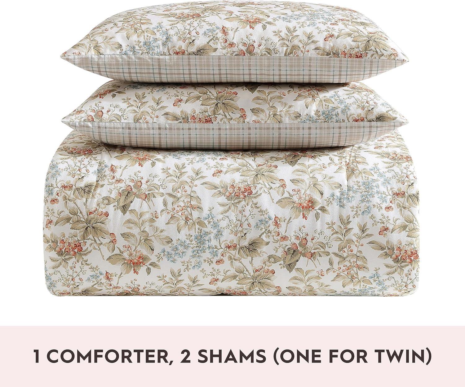 Laura Ashley – Twin Comforter Set, Cotton Floral Bedding with Matching Sham, Oeko-Tex Certified, Dorm Essentials (Heather Garden Pink)(Bramble Floral Beige)