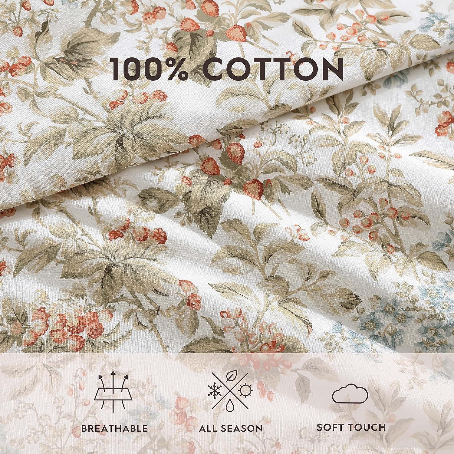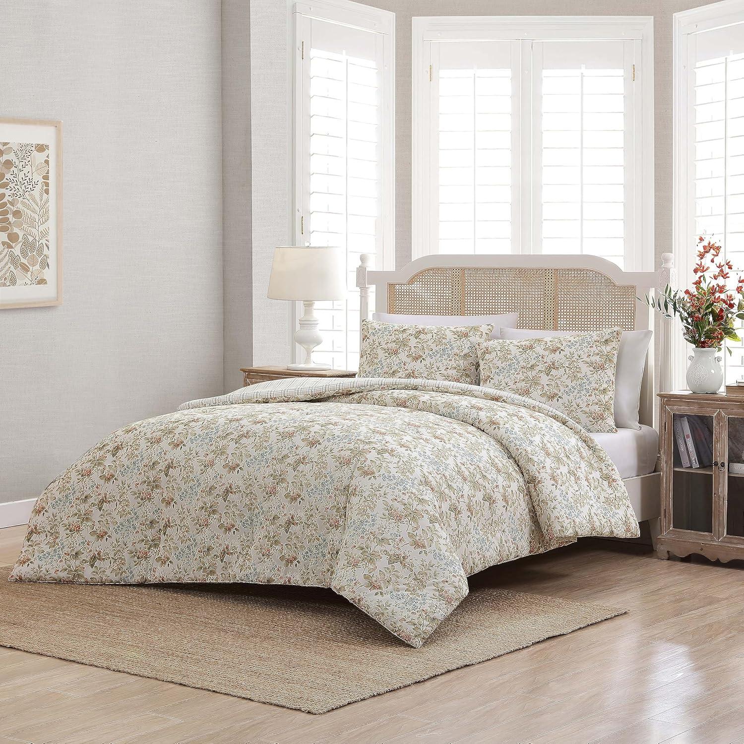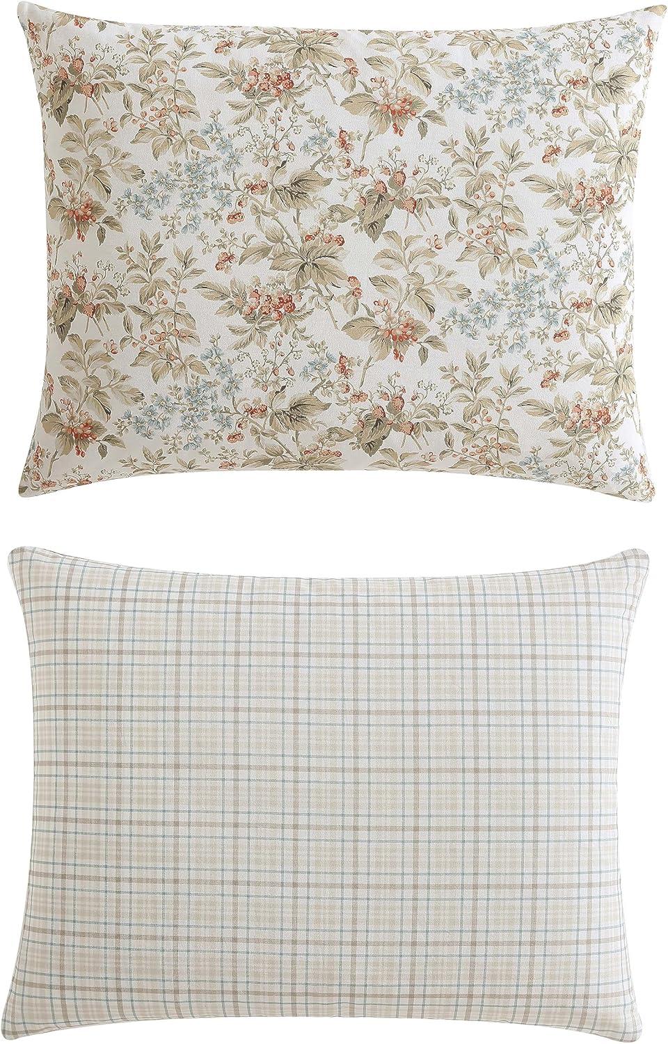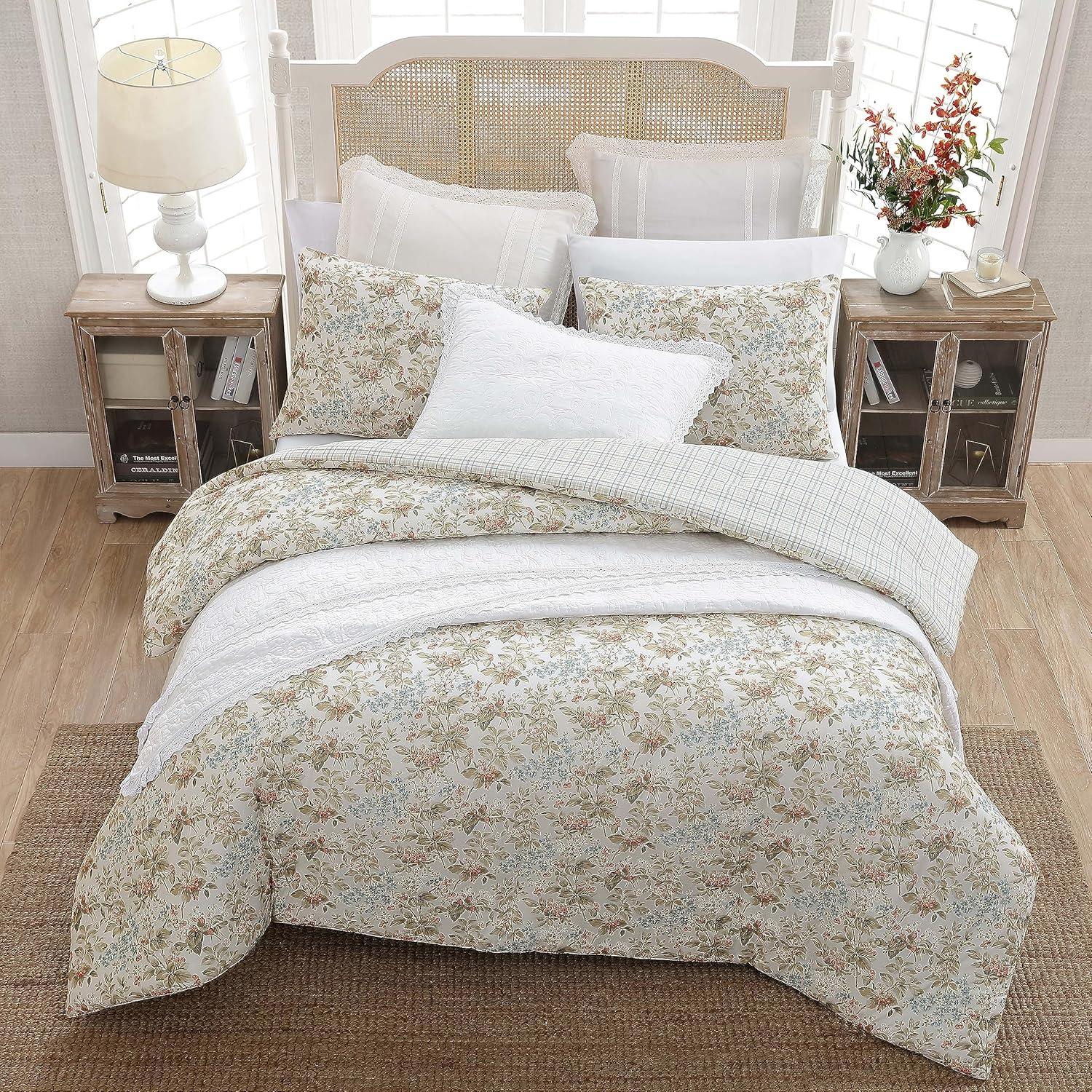 Laura Ashley – Twin Comforter Set, Cotton Floral Bedding with Matching Sham, Oeko-Tex Certified, Dorm Essentials (Heather Garden Pink)(Bramble Floral Beige)