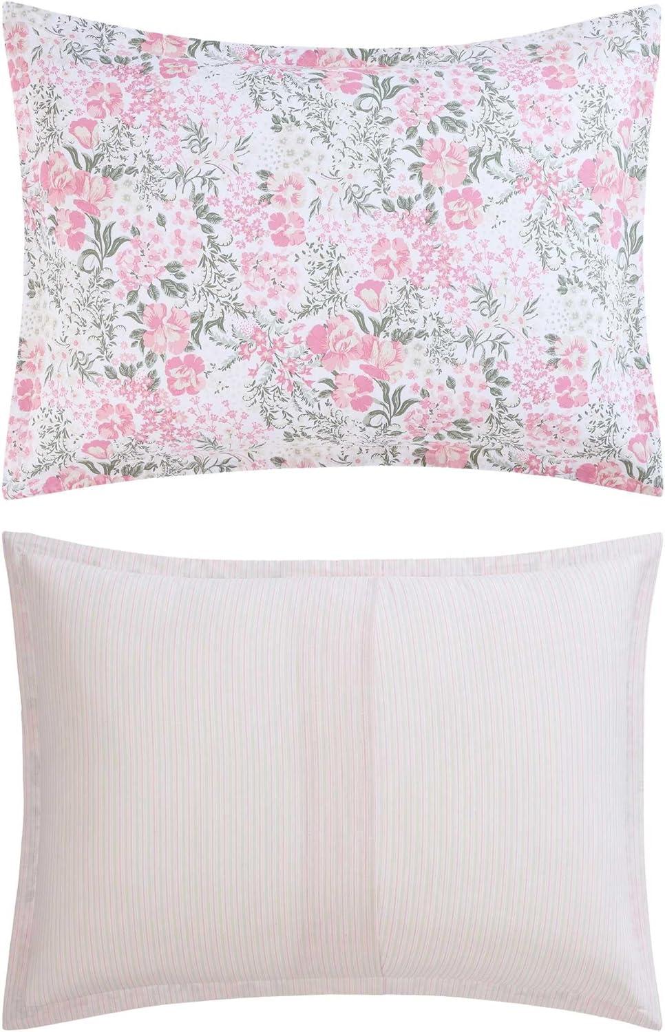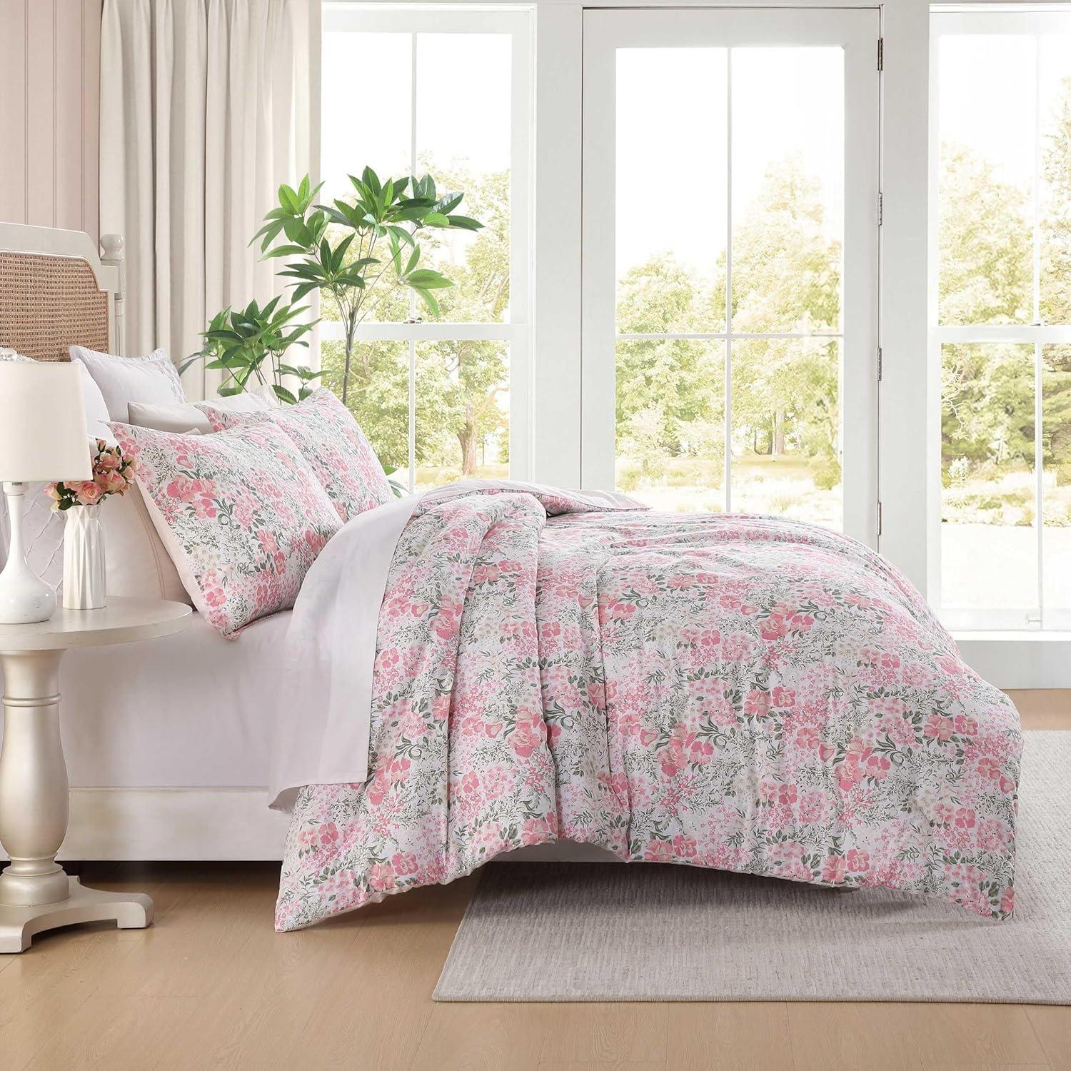 Laura Ashley – Twin Comforter Set, Cotton Floral Bedding with Matching Sham, Oeko-Tex Certified, Dorm Essentials (Heather Garden Pink)(Heather Garden Pink)