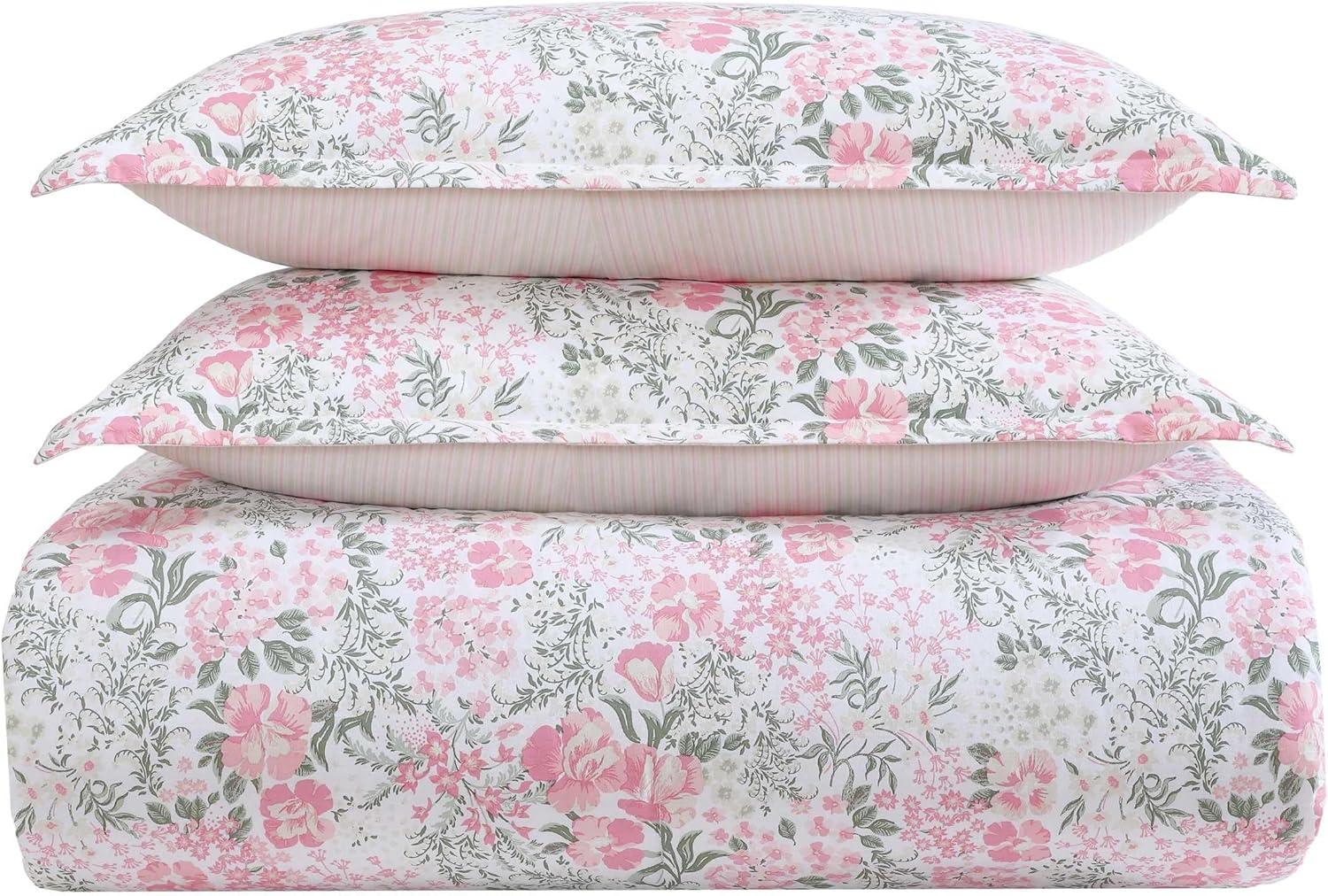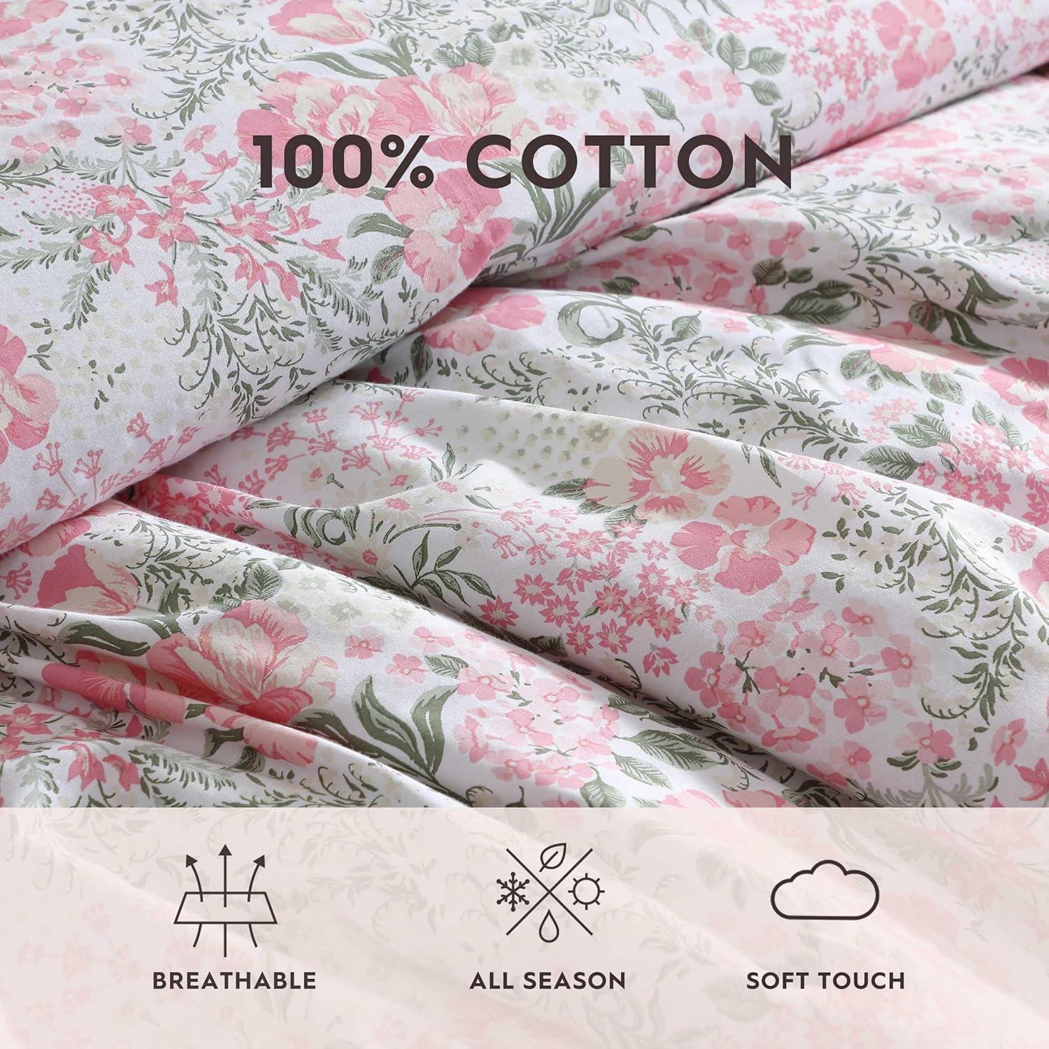 Laura Ashley – Twin Comforter Set, Cotton Floral Bedding with Matching Sham, Oeko-Tex Certified, Dorm Essentials (Heather Garden Pink)(Rosemoore Teal)