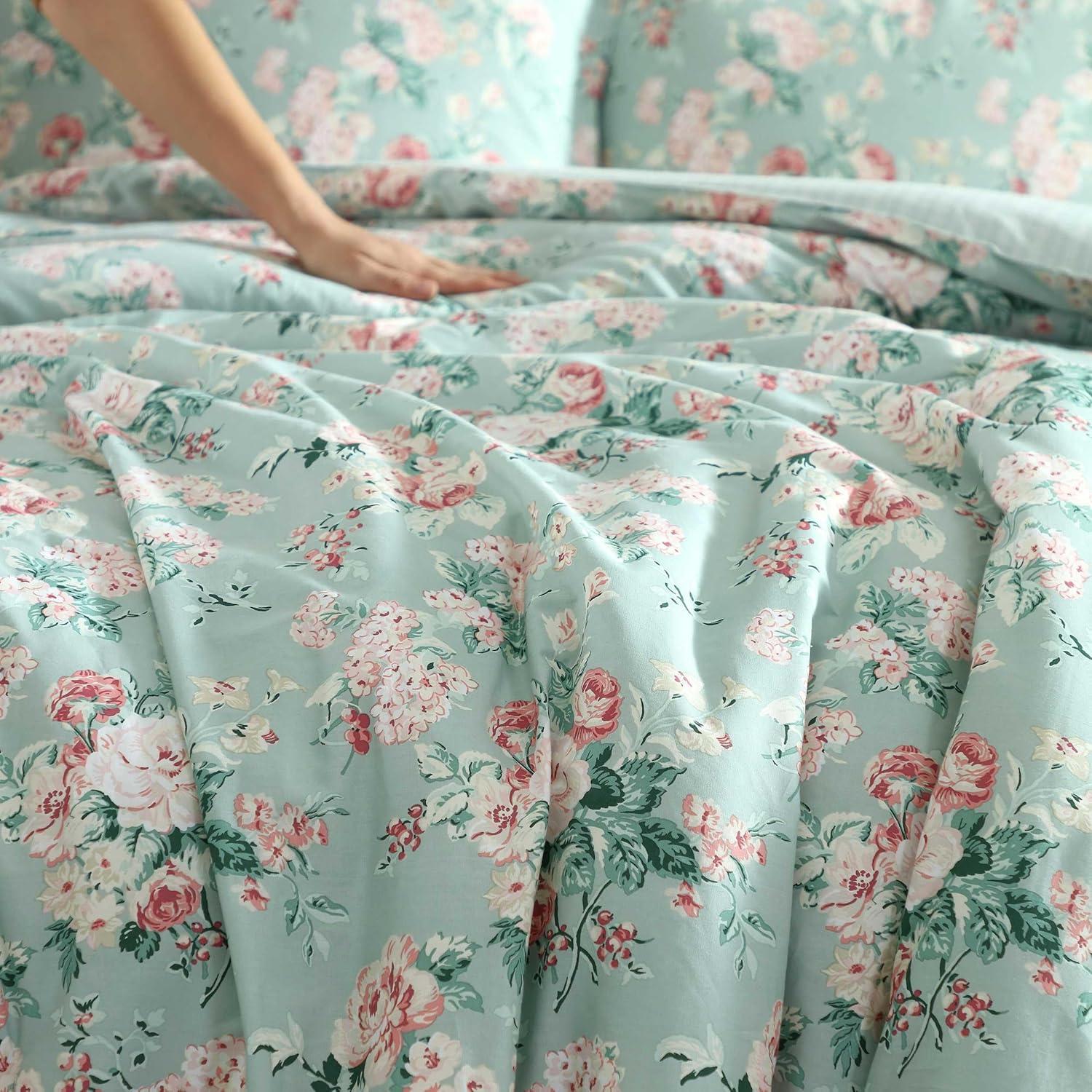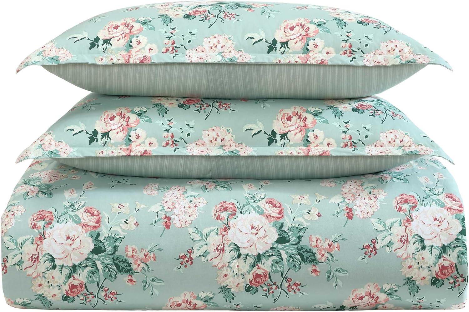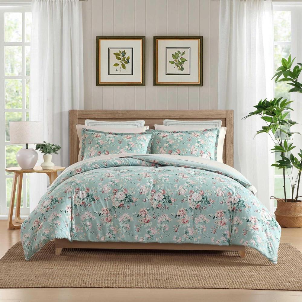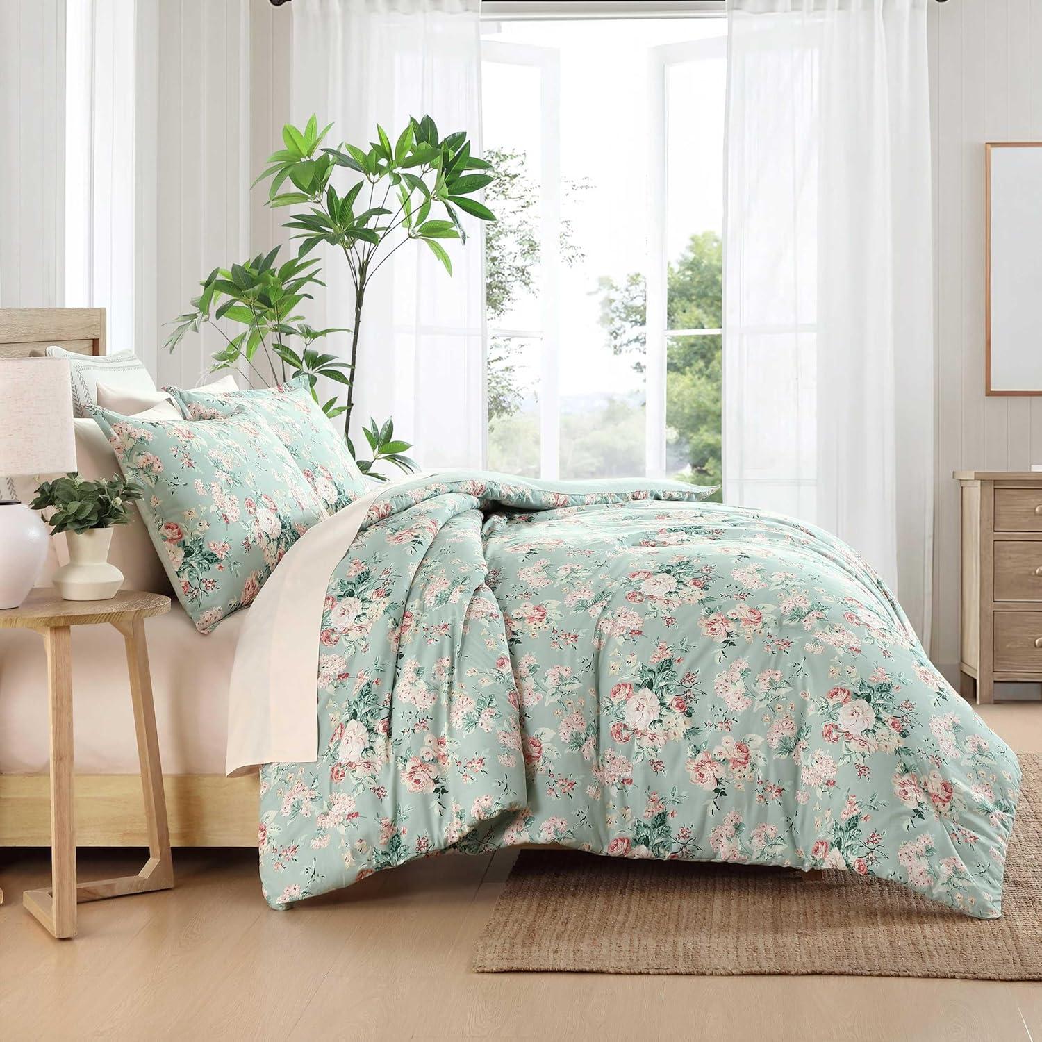 Laura Ashley – Twin Comforter Set, Cotton Floral Bedding with Matching Sham, Oeko-Tex Certified, Dorm Essentials (Heather Garden Pink)(Rosemoore Teal)