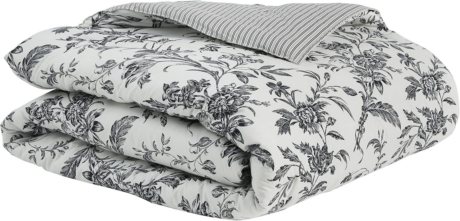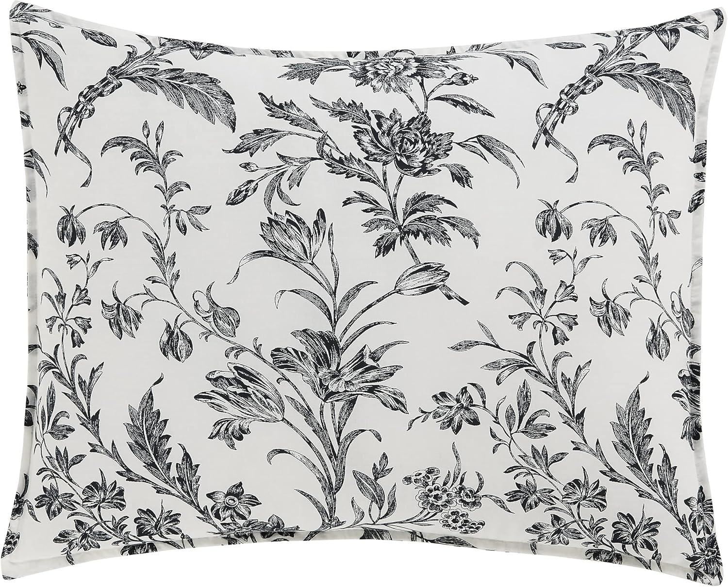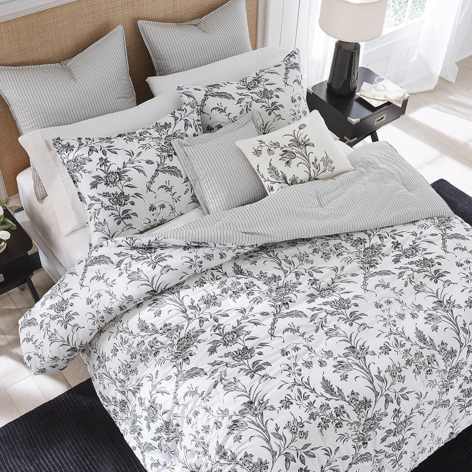 Laura Ashley – Twin Comforter Set, Reversible Floral Bedding with Matching Sham, Bonus Breakfast Pillow & Square Pillow Cover, Dorm Essentials (Gosford Pink)(Amberley Black/White)