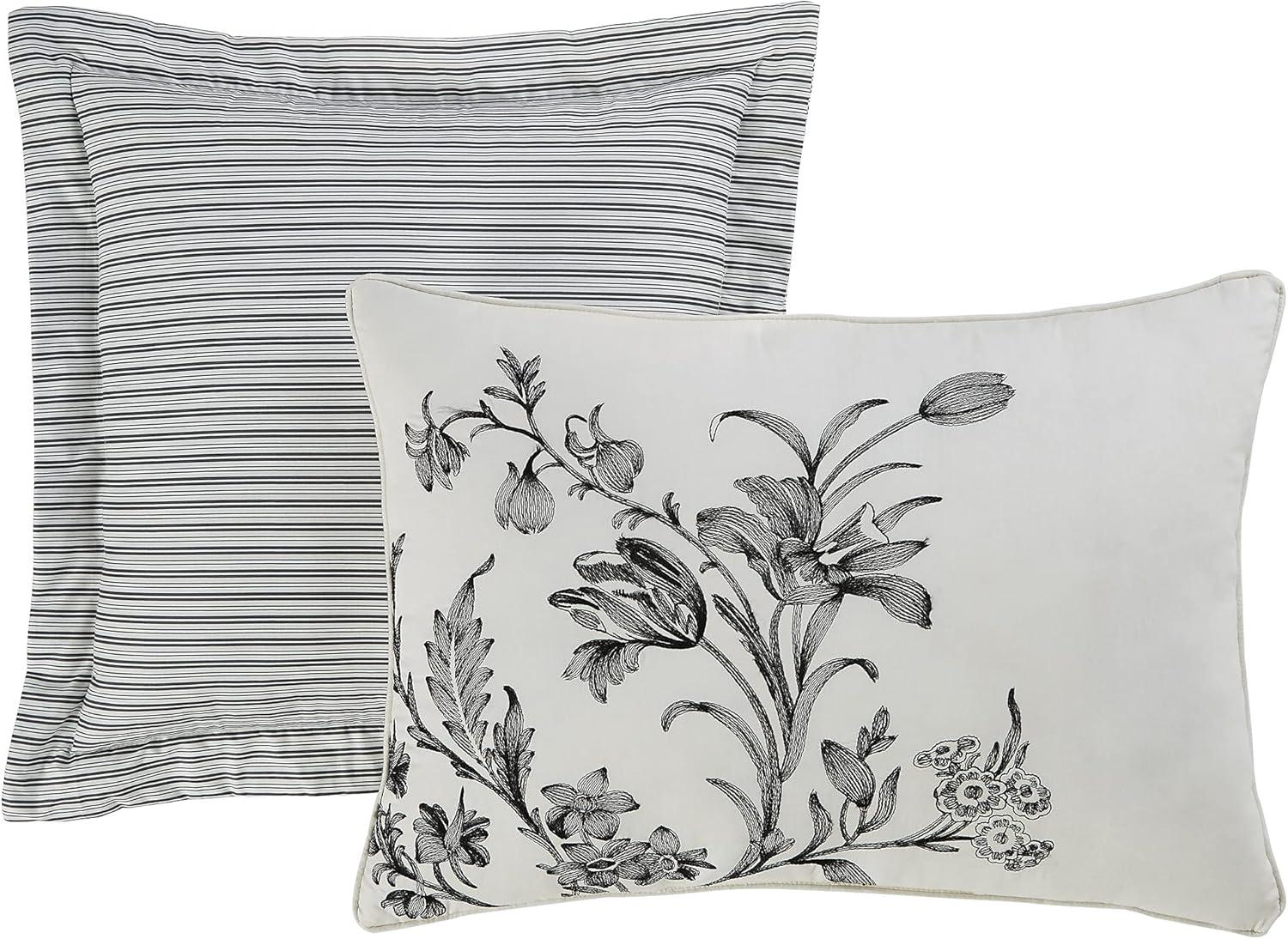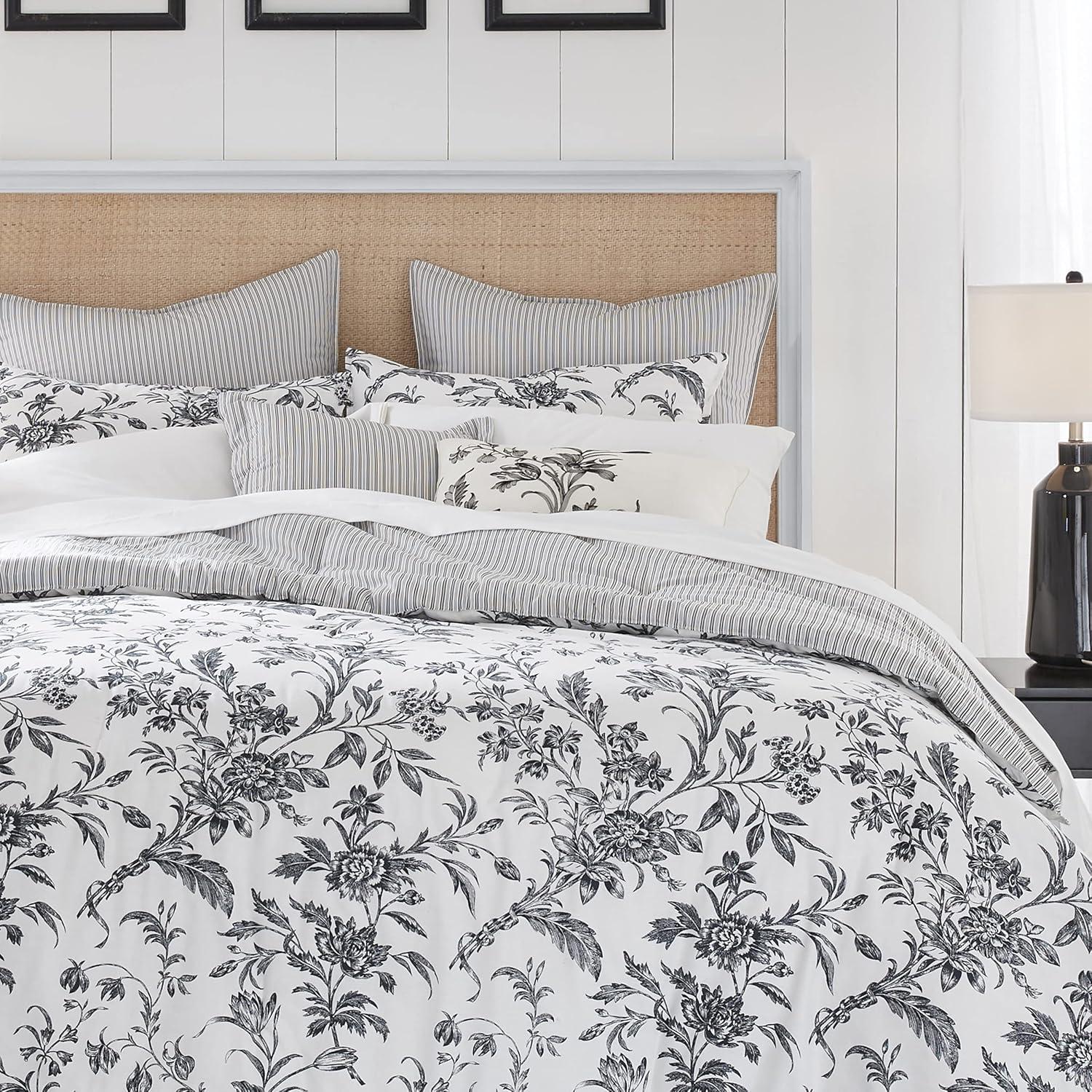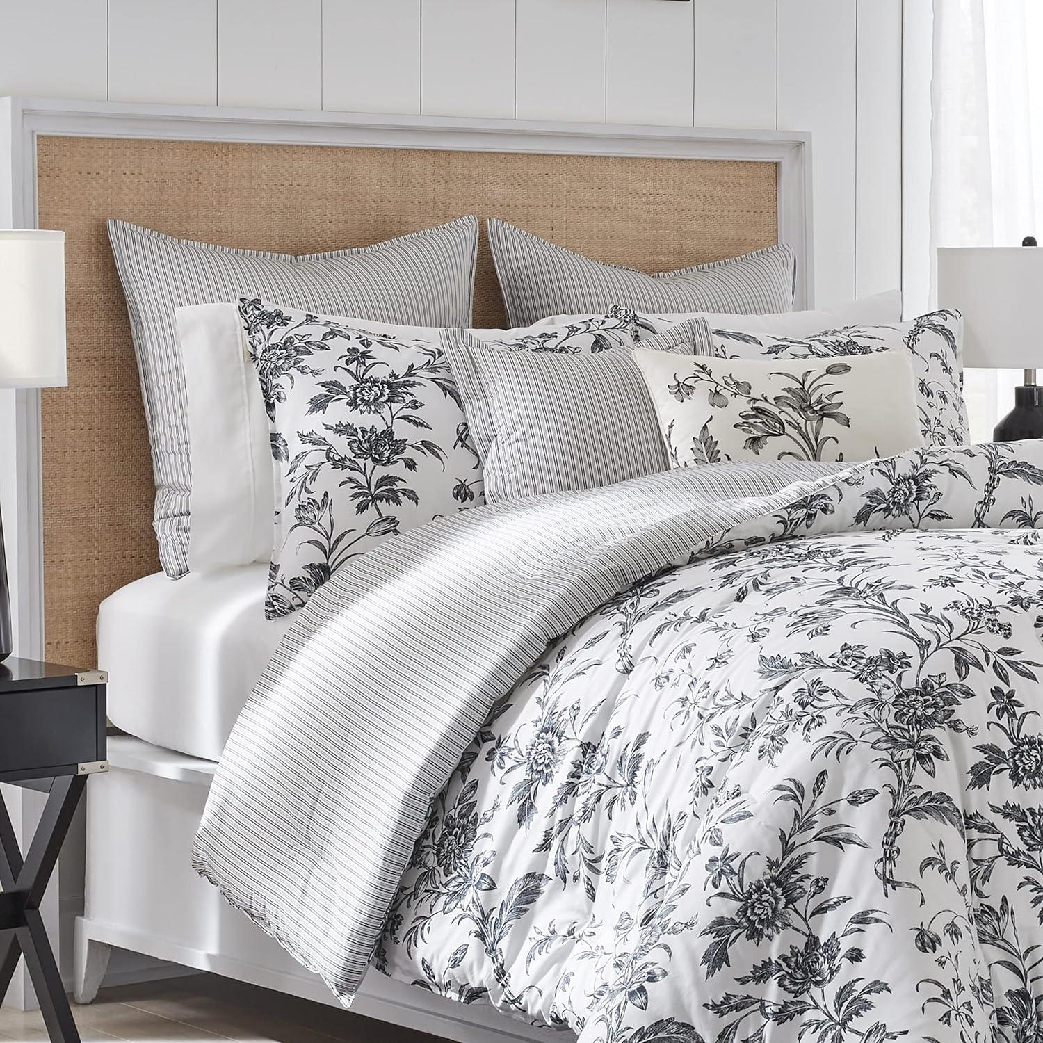 Laura Ashley – Twin Comforter Set, Reversible Floral Bedding with Matching Sham, Bonus Breakfast Pillow & Square Pillow Cover, Dorm Essentials (Gosford Pink)(Amberley Black/White)