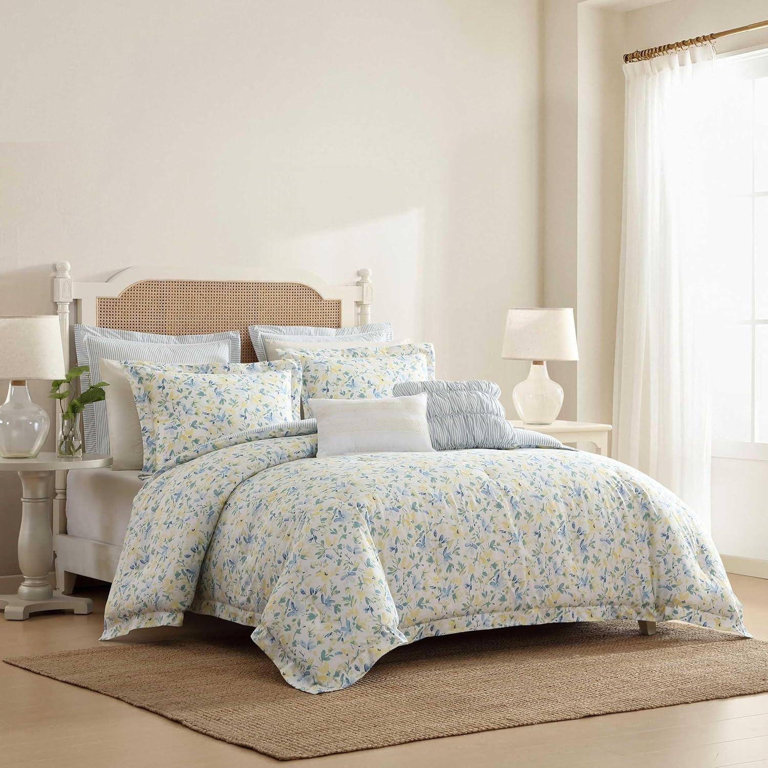 Transform your bedroom with the Laura Ashley's comforter sham bonus sets, designed to bring timeless elegance and cozy comfort to your space. 100% cotton, this beautifully crafted set includes a soft, inviting comforter paired with coordinating shams and decorative pillows for a polished, layer look. The twin set includes one comforter, one standard sham, one European sham, one breakfast pillow, and one square pillow cover. The full/queen set features two standard shams, two European shams, one breakfast pillow, and one square pillow cover, while the king set includes the same pieces with king-sized shams. Designed for both beauty and practicality, this set is machine washable for easy care