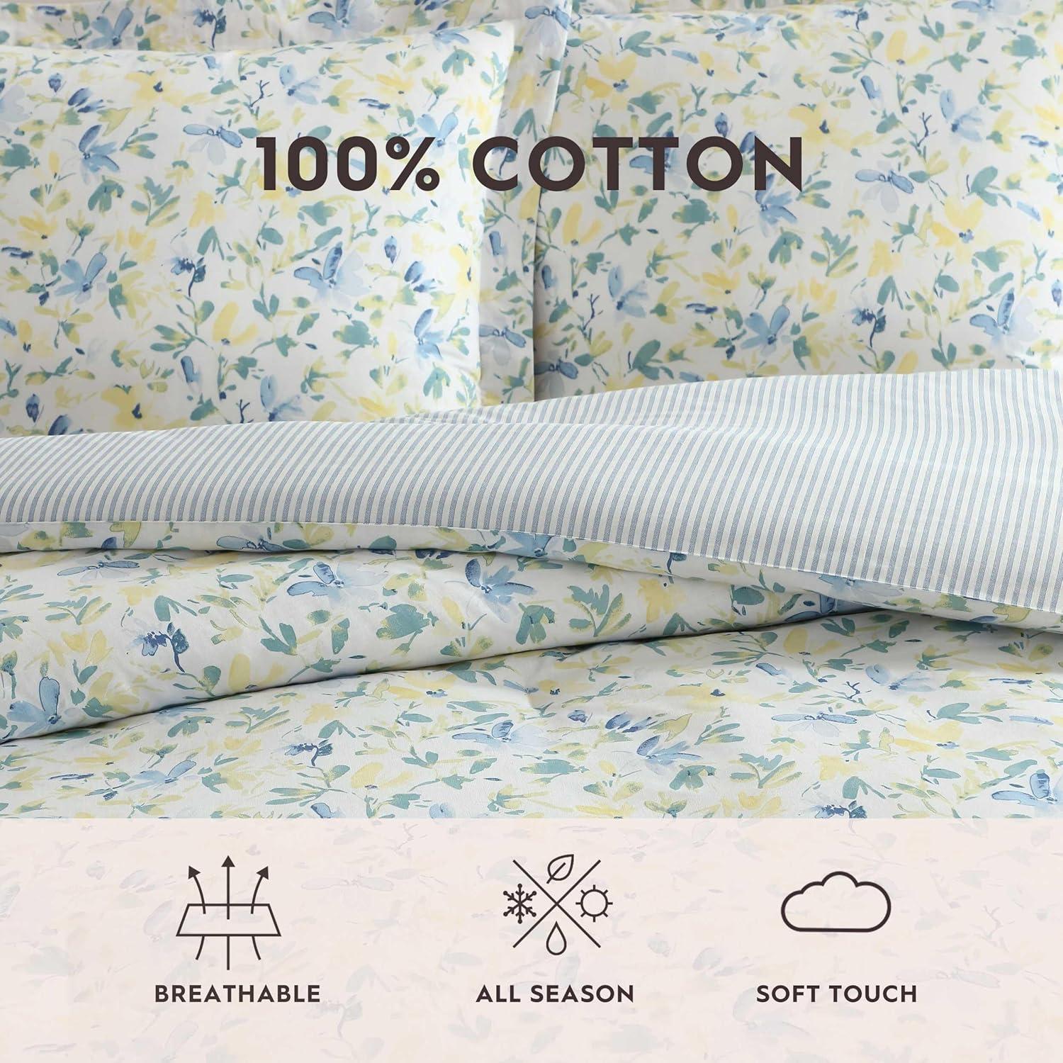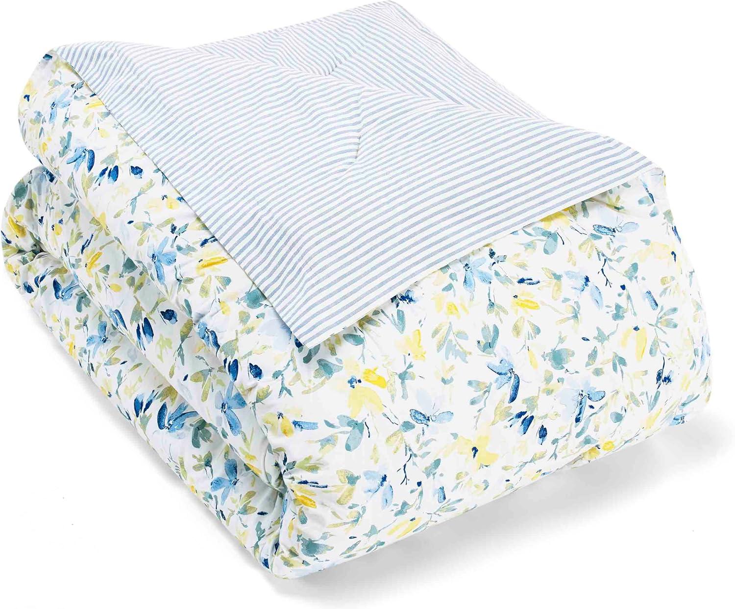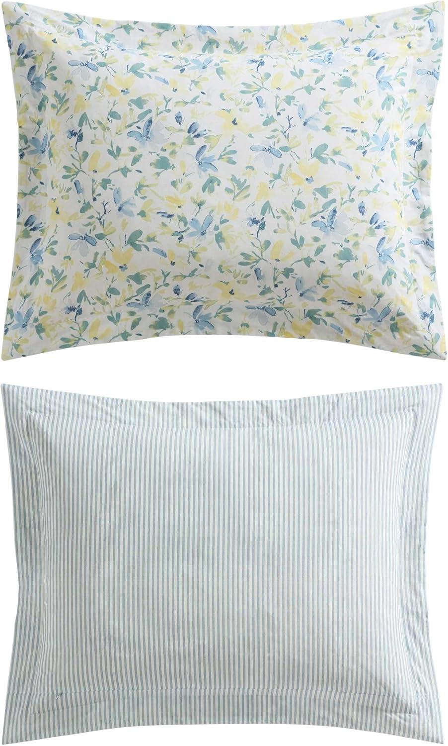 Laura Ashley – Twin Comforter Set, Reversible Floral Bedding with Matching Sham, Bonus Breakfast Pillow & Square Pillow Cover, Dorm Essentials (Gosford Pink)(Nora Blue/Yellow/Green/White)