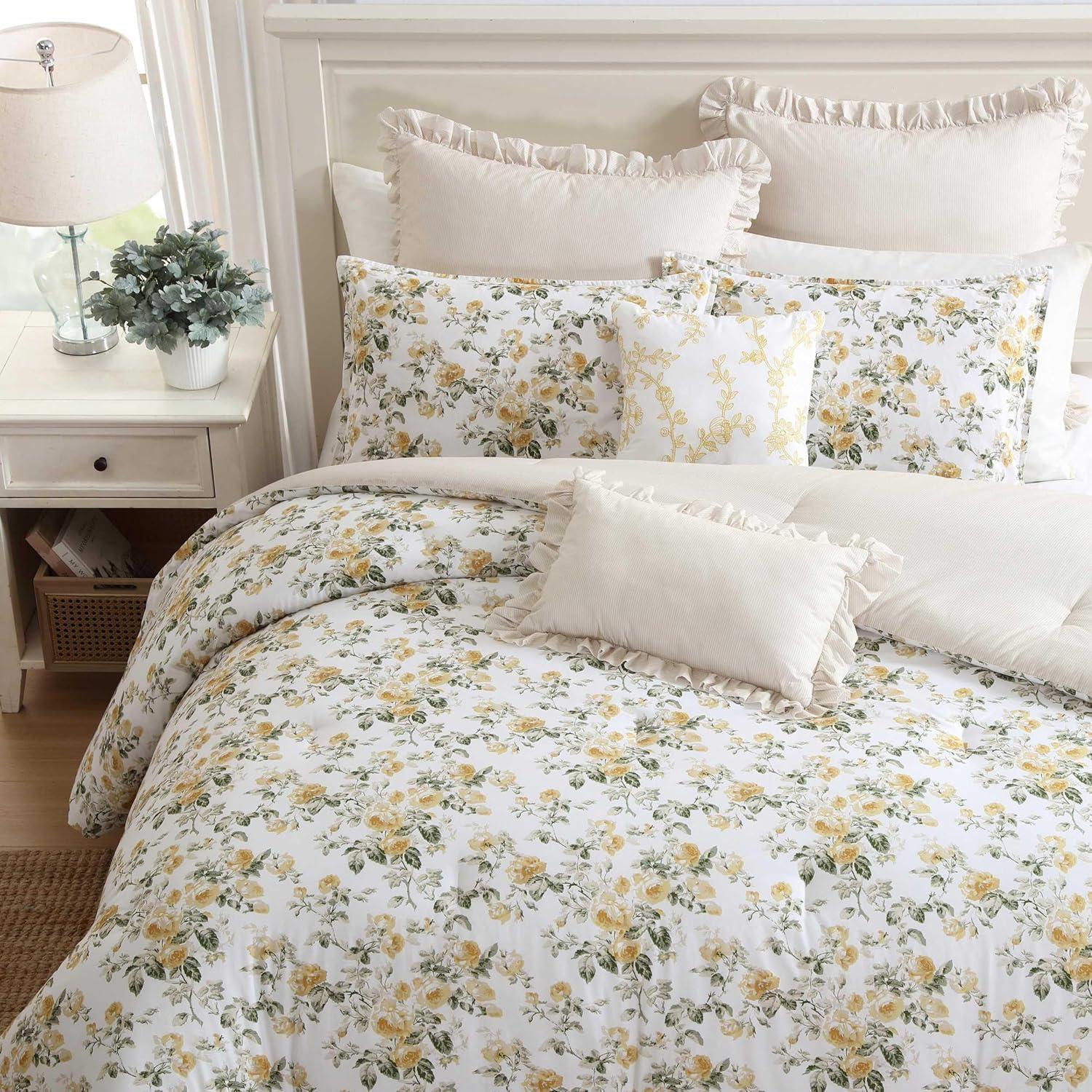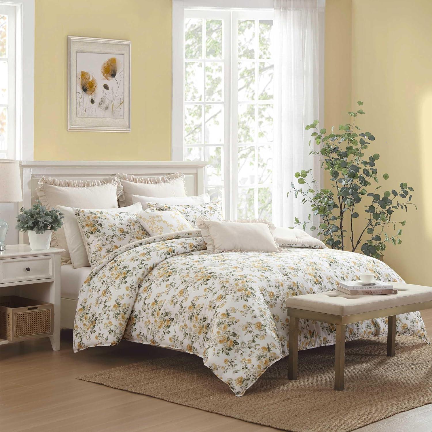 Transform your bedroom with the Laura Ashley's comforter sham bonus sets, designed to bring timeless elegance and cozy comfort to your space. 100% cotton, this beautifully crafted set includes a soft, inviting comforter paired with coordinating shams and decorative pillows for a polished, layer look. The twin set includes one comforter, one standard sham, one European sham, one breakfast pillow, and one square pillow cover. The full/queen set features two standard shams, two European shams, one breakfast pillow, and one square pillow cover, while the king set includes the same pieces with king-sized shams. Designed for both beauty and practicality, this set is machine washable for easy care