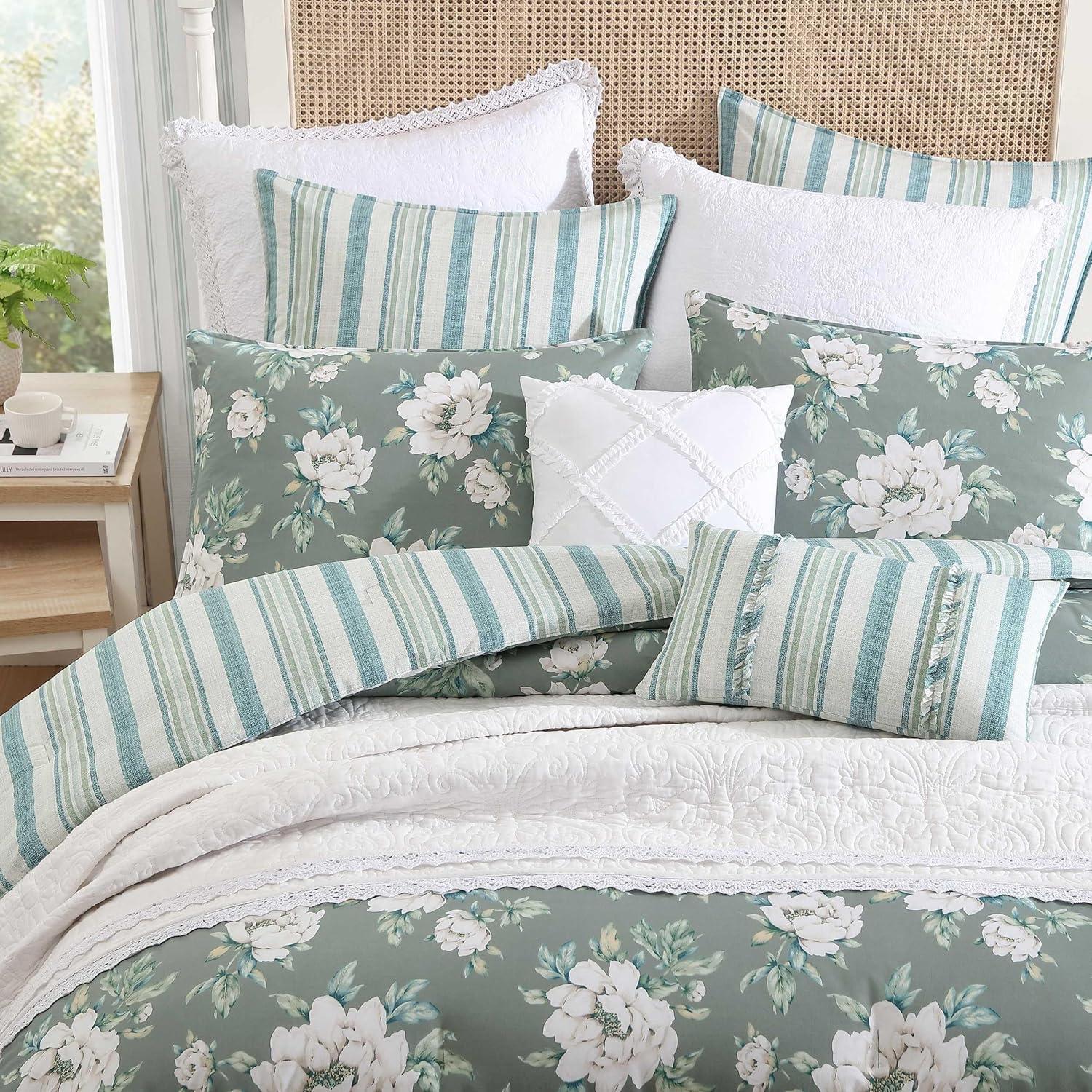 Transform your bedroom with the Laura Ashley's comforter sham bonus sets, designed to bring timeless elegance and cozy comfort to your space. 100% cotton, this beautifully crafted set includes a soft, inviting comforter paired with coordinating shams and decorative pillows for a polished, layer look. The twin set includes one comforter, one standard sham, one European sham, one breakfast pillow, and one square pillow cover. The full/queen set features two standard shams, two European shams, one breakfast pillow, and one square pillow cover, while the king set includes the same pieces with king-sized shams. Designed for both beauty and practicality, this set is machine washable for easy care