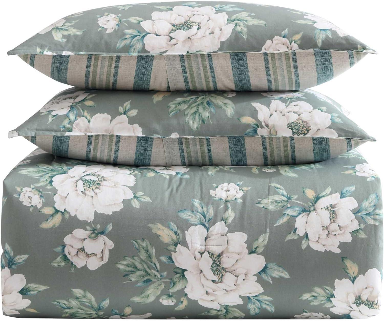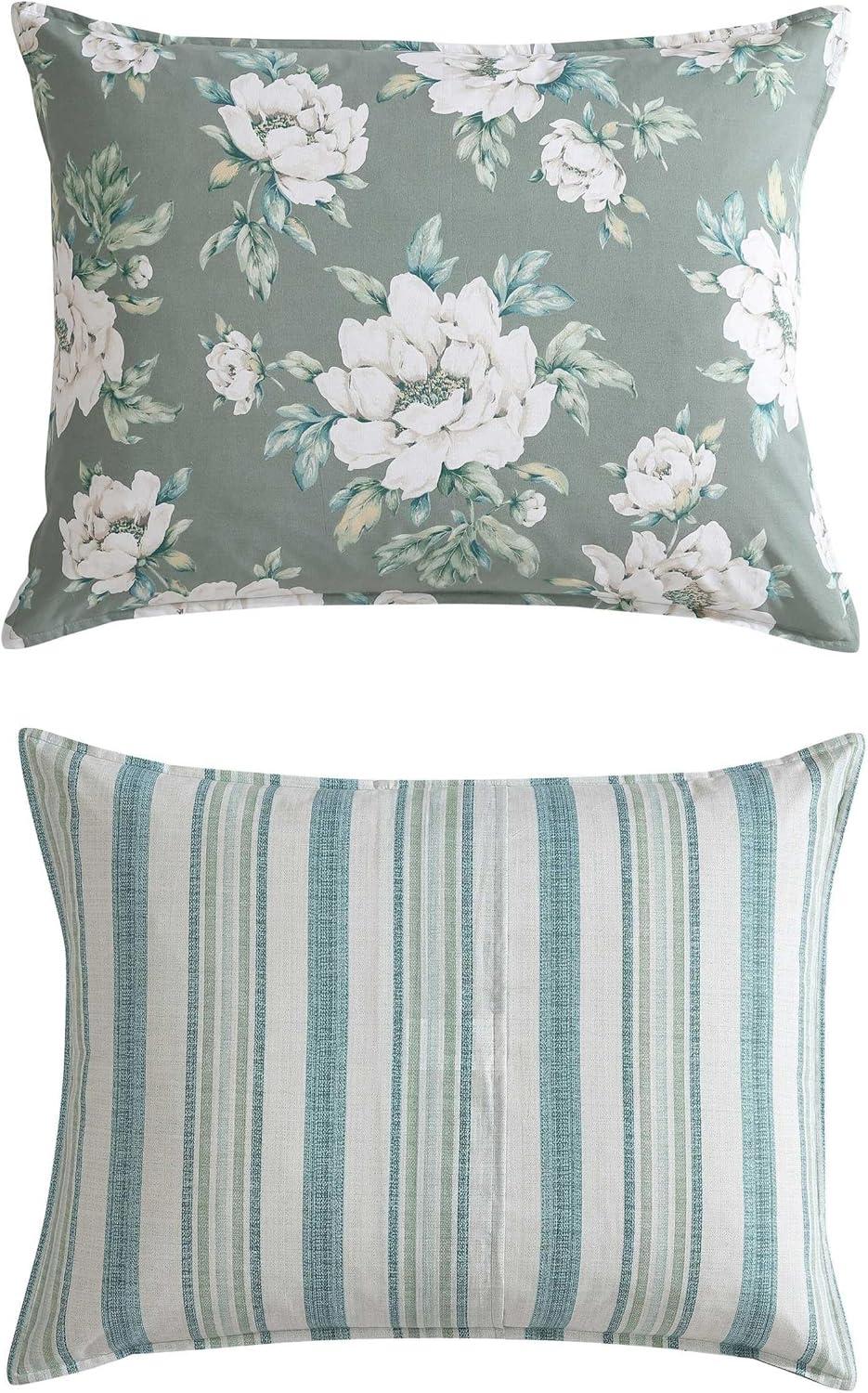 Laura Ashley – Twin Comforter Set, Reversible Floral Bedding with Matching Sham, Bonus Breakfast Pillow & Square Pillow Cover, Dorm Essentials (Gosford Pink)(Wisley Floral Green)