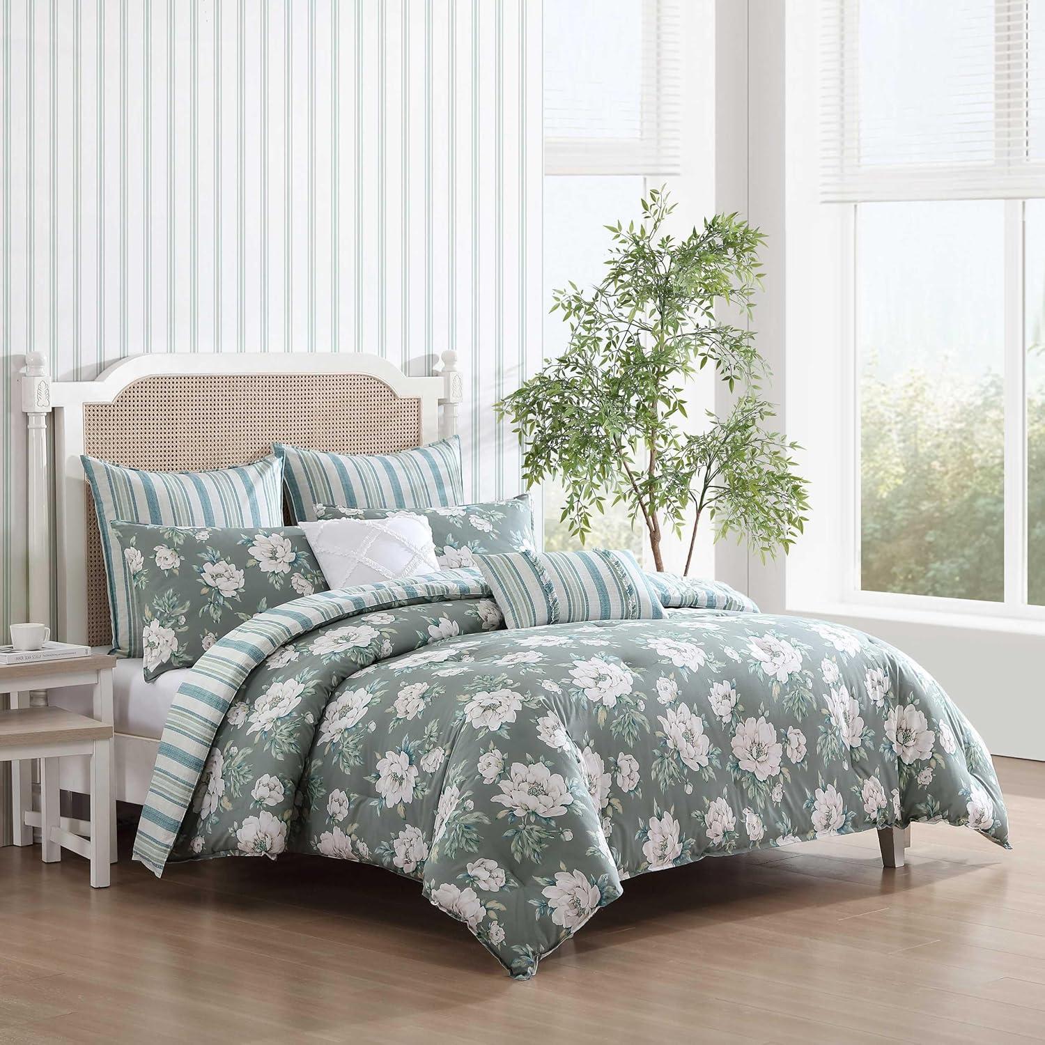 imageLaura Ashley  Twin Comforter Set Reversible Floral Bedding with Matching Sham Bonus Breakfast Pillow ampamp Square Pillow Cover Dorm Essentials Gosford PinkToile Delight Green