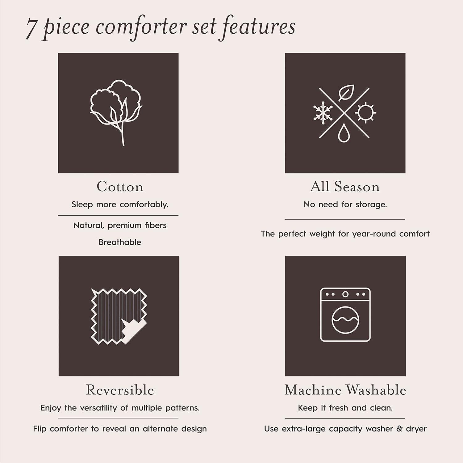 Transform your bedroom with the Laura Ashley's comforter sham bonus sets, designed to bring timeless elegance and cozy comfort to your space. 100% cotton, this beautifully crafted set includes a soft, inviting comforter paired with coordinating shams and decorative pillows for a polished, layer look. The twin set includes one comforter, one standard sham, one European sham, one breakfast pillow, and one square pillow cover. The full/queen set features two standard shams, two European shams, one breakfast pillow, and one square pillow cover, while the king set includes the same pieces with king-sized shams. Designed for both beauty and practicality, this set is machine washable for easy care