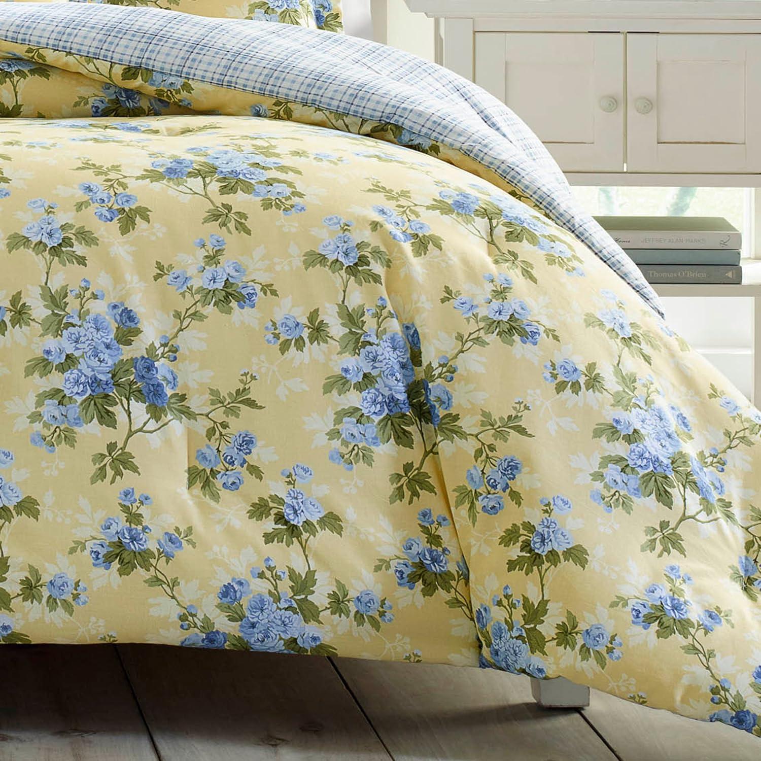 Laura Ashley – Twin Comforter Set, Reversible Floral Bedding with Matching Sham, Bonus Breakfast Pillow & Square Pillow Cover, Dorm Essentials (Gosford Pink)(Yellow/Blue/Green)