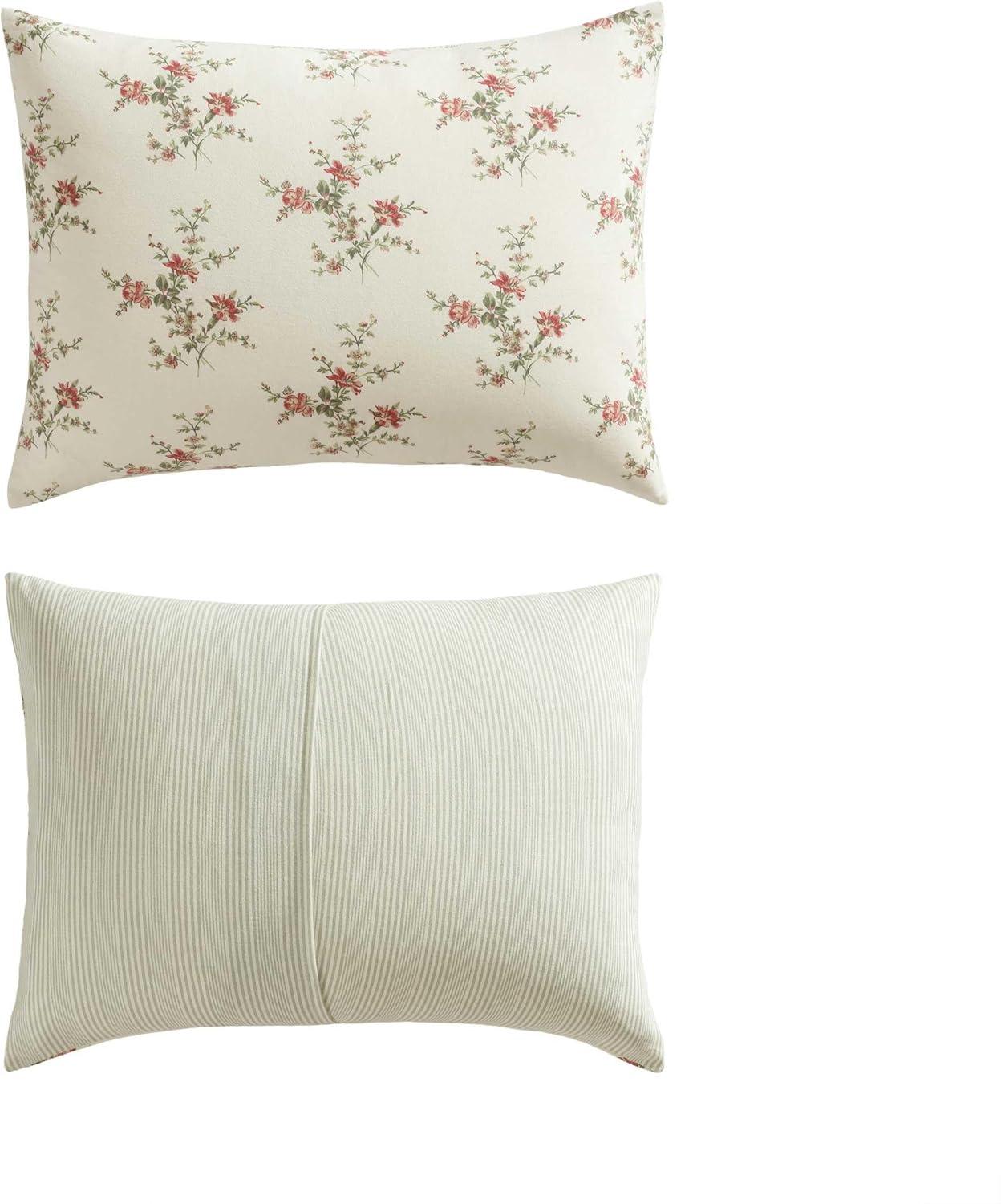 Laura Ashley – Twin Comforter Set, Reversible & Naturally Soft Cotton Flannel Bedding w/Matching Pillowcase, Medium Weight for Year Round Use, 2 Piece Bed Sets (Meredith Grey)(Jessika Red)