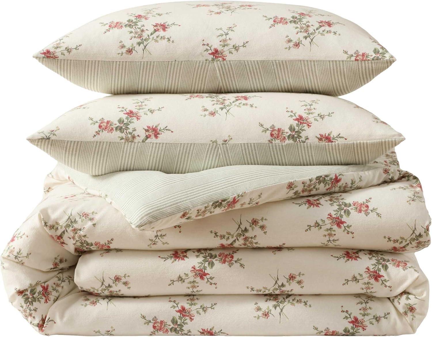 Laura Ashley – Twin Comforter Set, Reversible & Naturally Soft Cotton Flannel Bedding w/Matching Pillowcase, Medium Weight for Year Round Use, 2 Piece Bed Sets (Meredith Grey)(Meredith Grey)