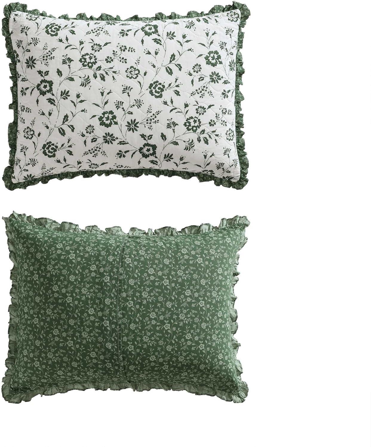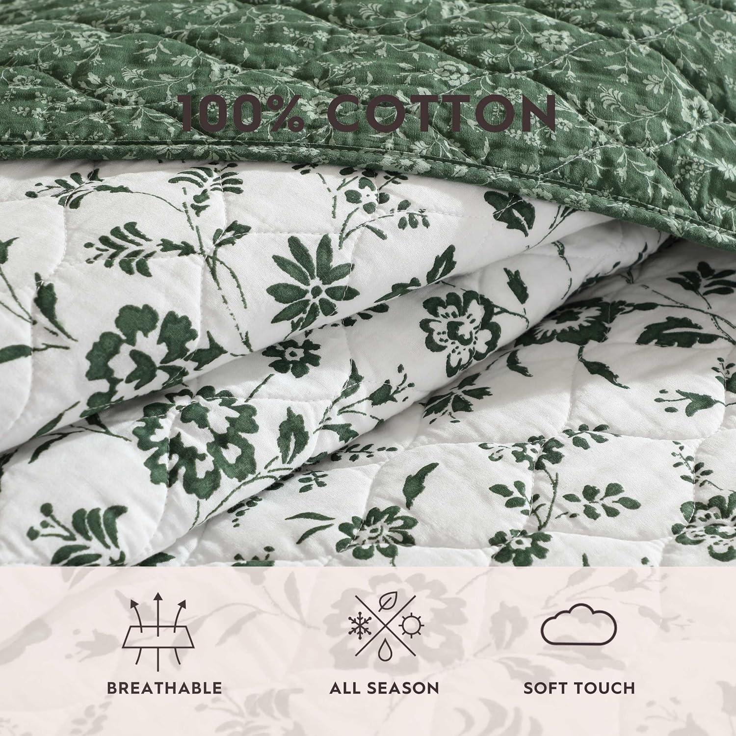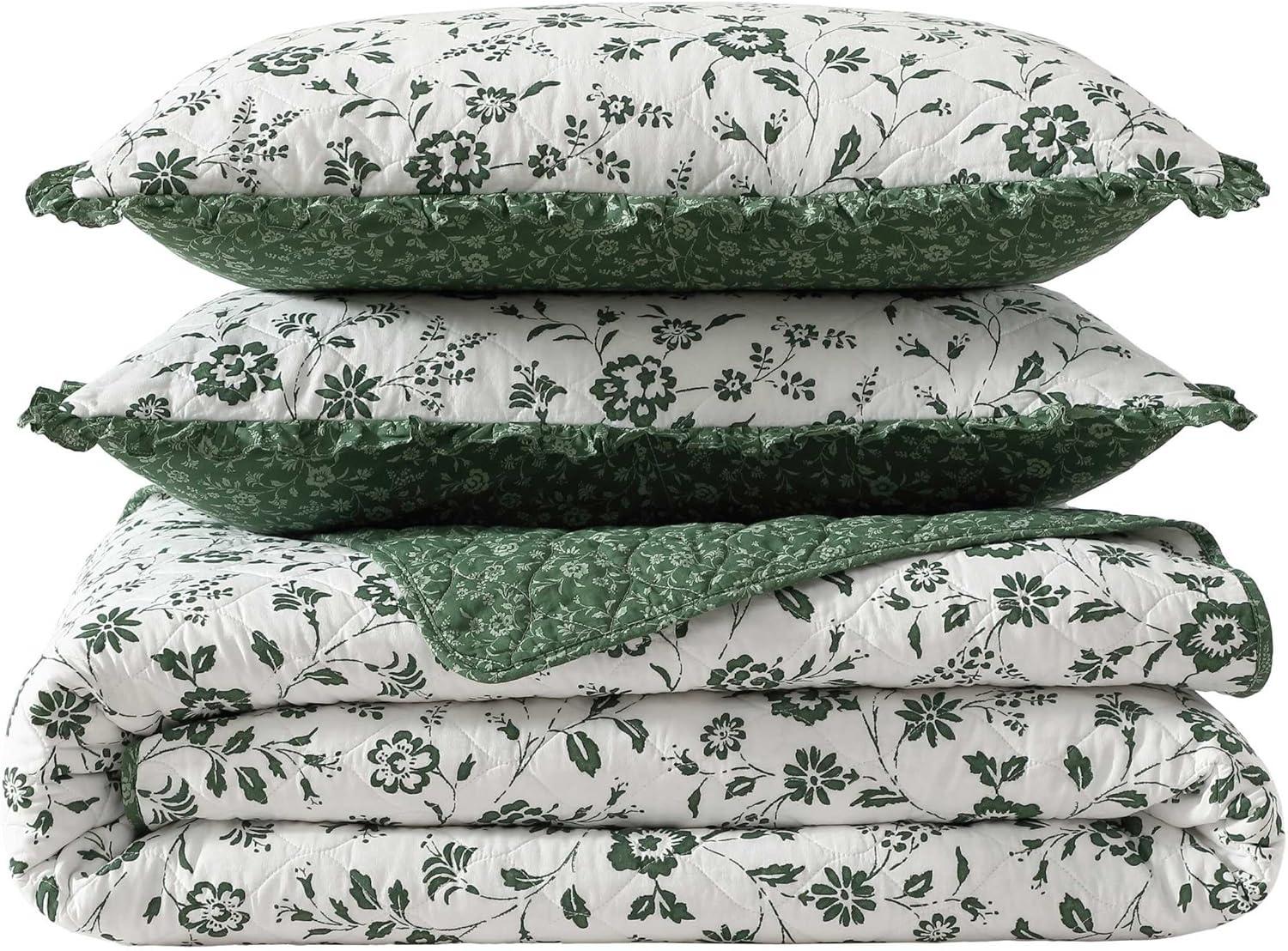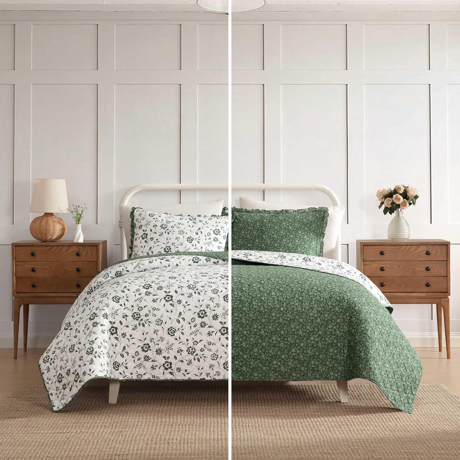 Laura Ashley – Twin Quilt Set, Pre-Washed Cotton Bedding with Matching Sham, Lightweight for Year Round Use, Dorm Essentials, Oeko-Tex Certified (Miranda Green)(Full/Queen)