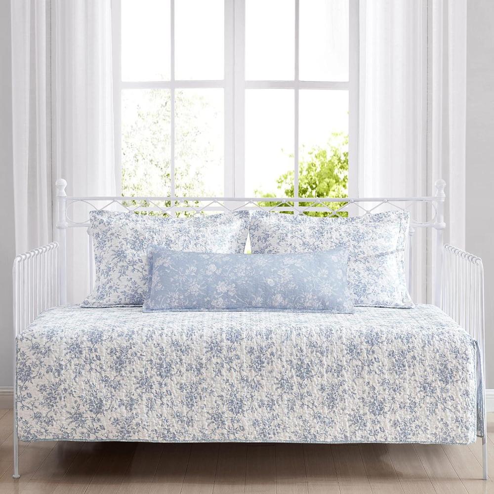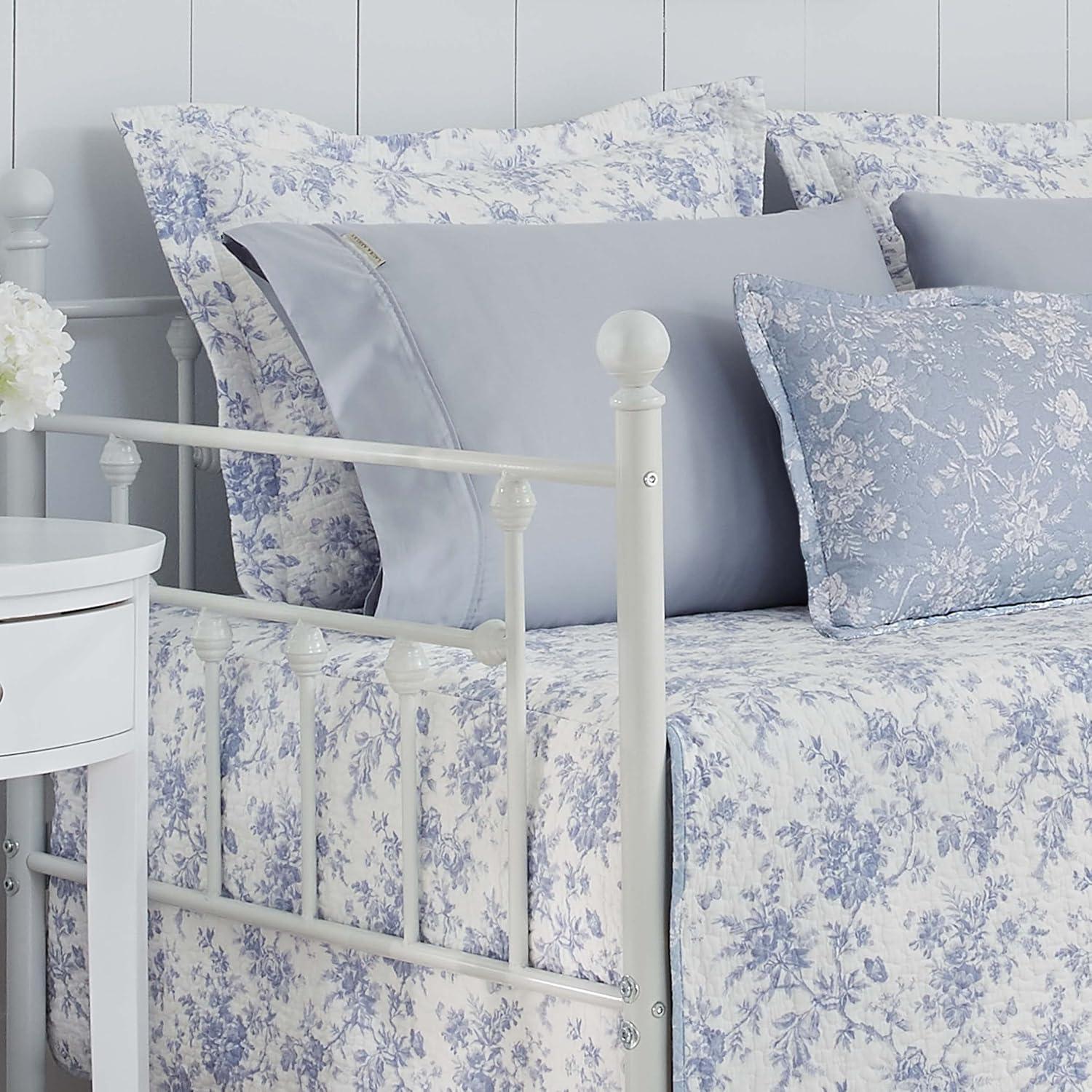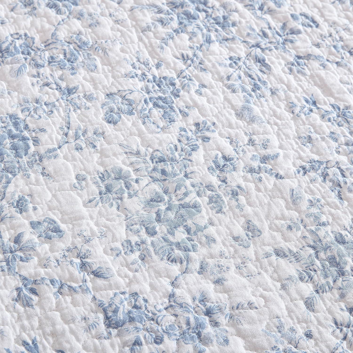 Laura Ashley – Twin Quilt Set, Reversible Cotton Bedding with Matching Sham, Medium-Weight for Year Round Use, Dorm Essentials (Amberley Soft Blue)(Emilie Blue)