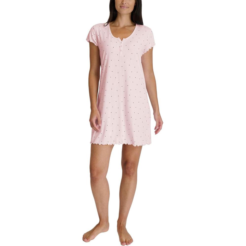 Laura Ashley Women’s Nightgown Ribbed Knit Short Sleeve Henley Sleepshirt(Pink Dot)